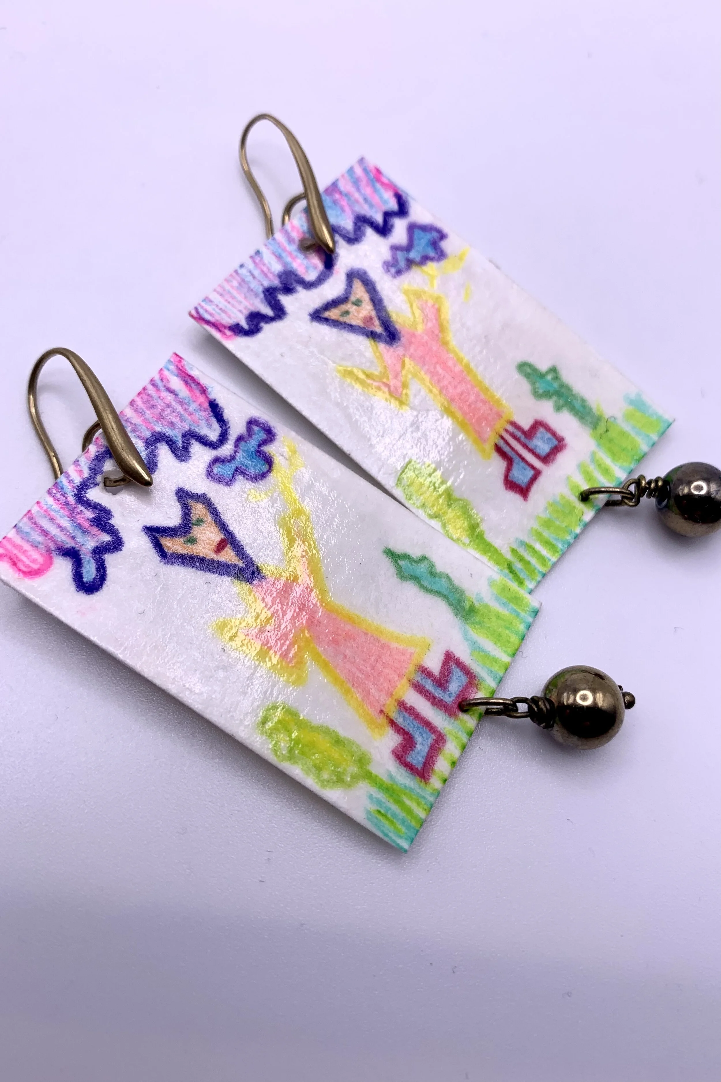 Archives › Hand drawn fox magician & hematite drop earrings