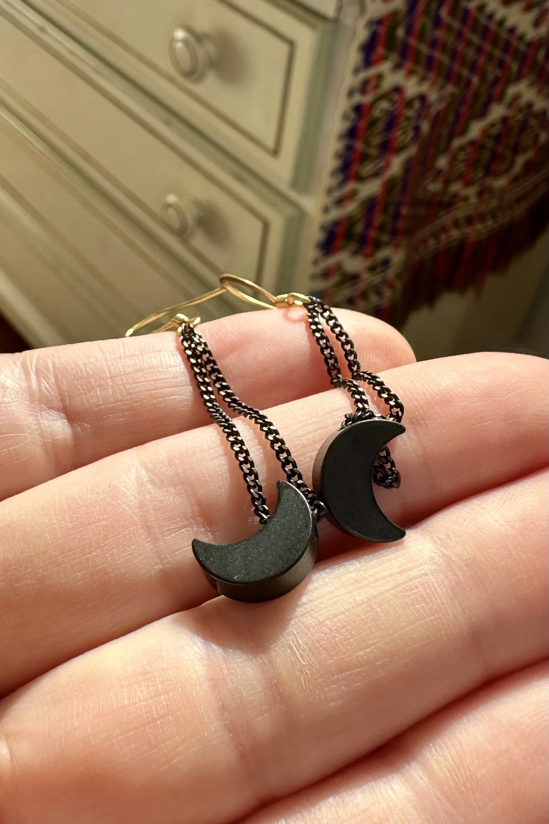 Archives › black oxide crescent moon dangles Image 1 of 6 Image 2 of 6 Image 3 of 6 Image 4 of 6 Image 5 of 6 Image 6 of 6 black oxide crescent moon dangles $50.00 sold out Sold Out Added!