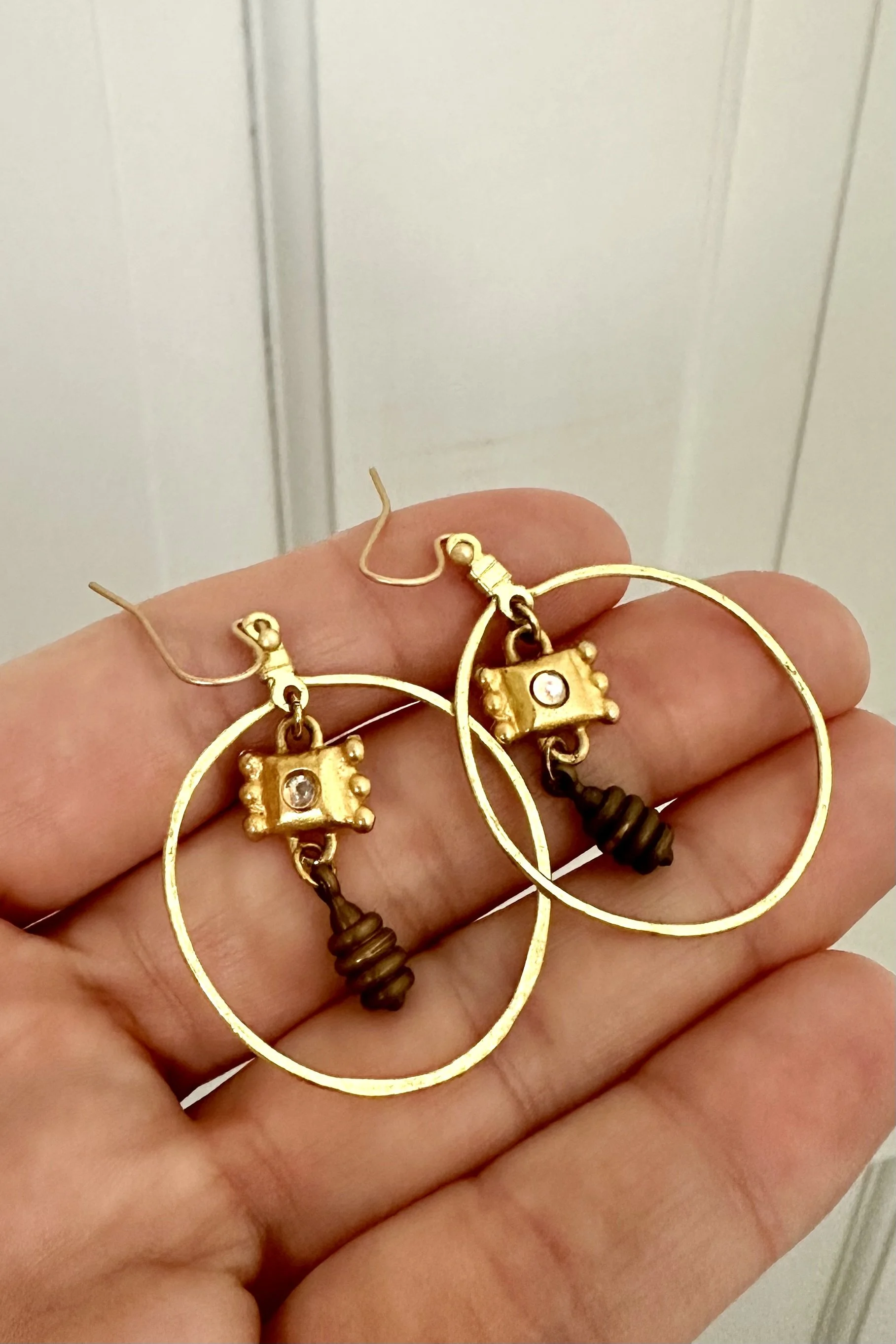 Archives › brass hammered hoops glass elegant detailing & drop Image 1 of 3 Image 2 of 3 Image 3 of 3 brass hammered hoops glass elegant detailing & drop $65.00 Add To Cart Added!
