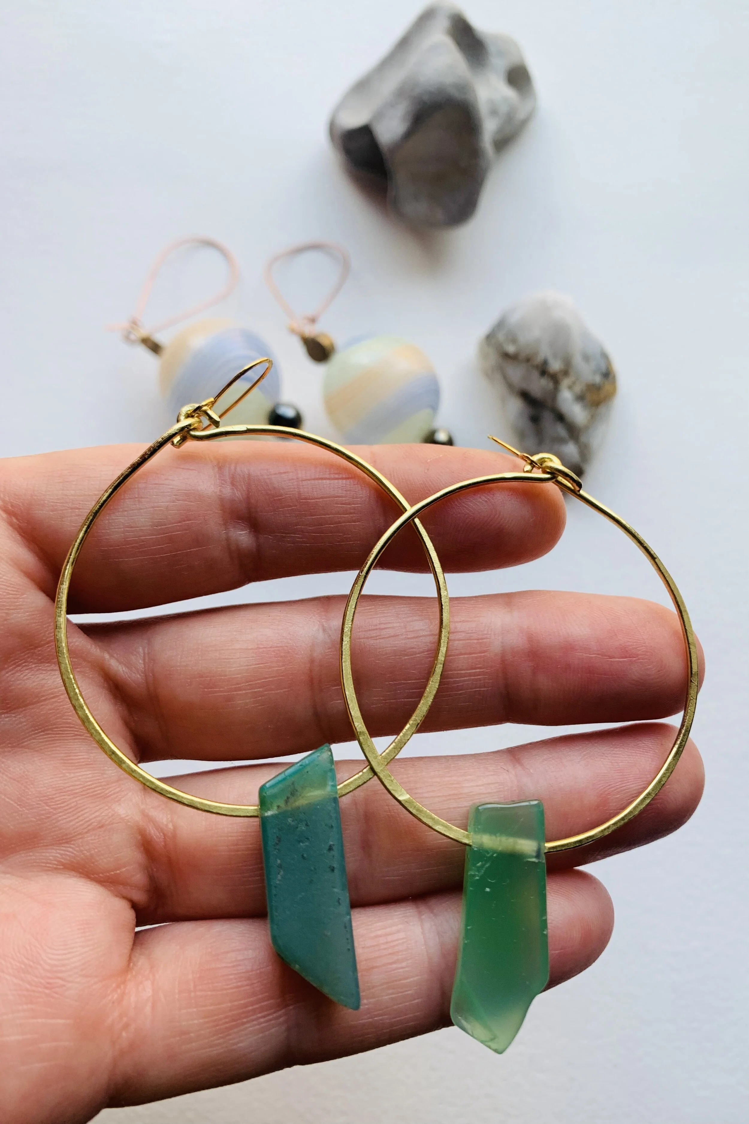 Archives › Brass Handformed Hoops with Green Agate Image 1 of 4 Image 2 of 4 Image 3 of 4 Image 4 of 4 Brass Handformed Hoops with Green Agate $50.00 sold out Sold Out Added!