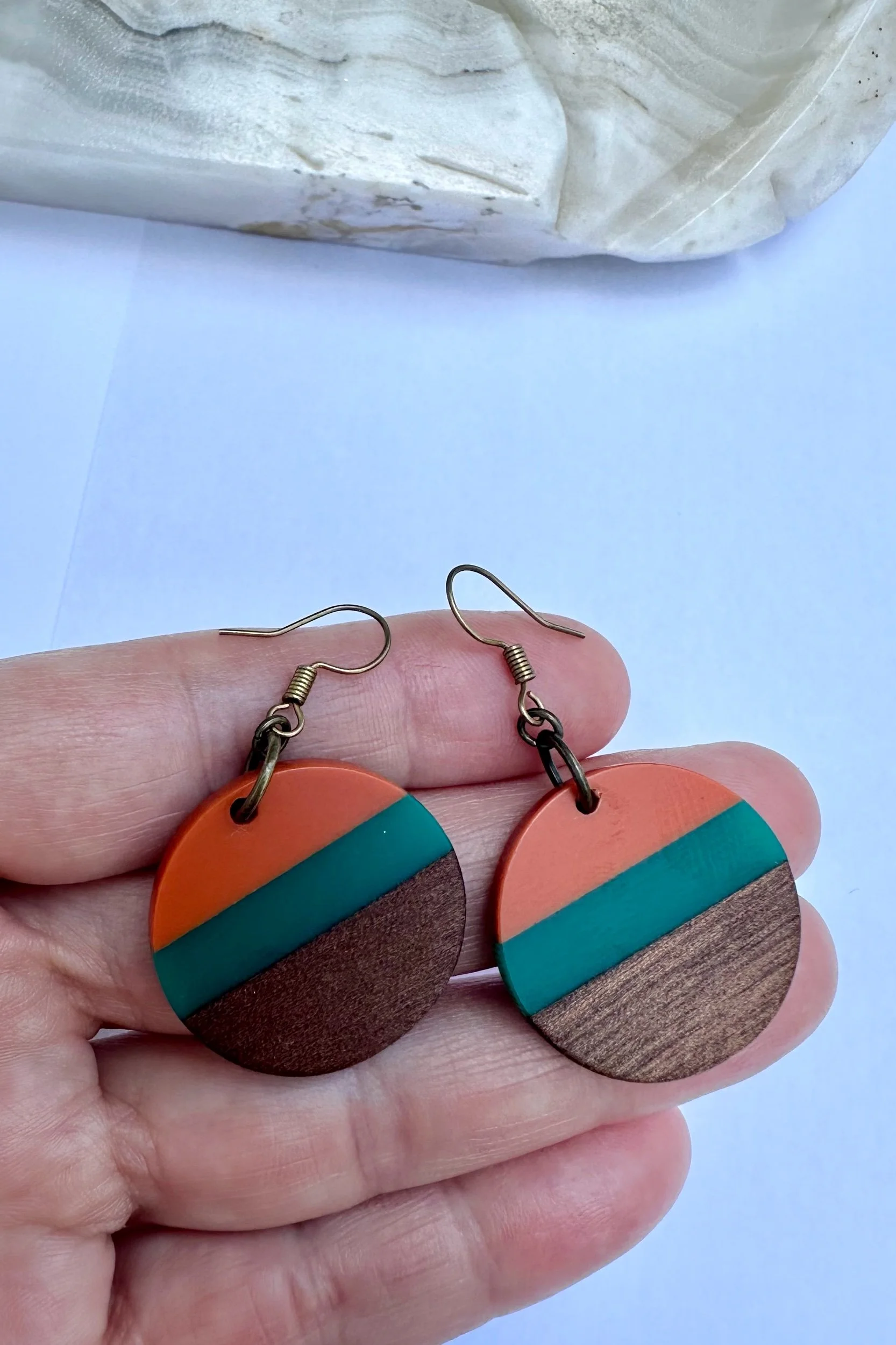 Archives › bright orange and teal resin and wood disc earrings Image 1 of 4 Image 2 of 4 Image 3 of 4 Image 4 of 4 bright orange and teal resin and wood disc earrings $45.00 sold out Sold Out Added!