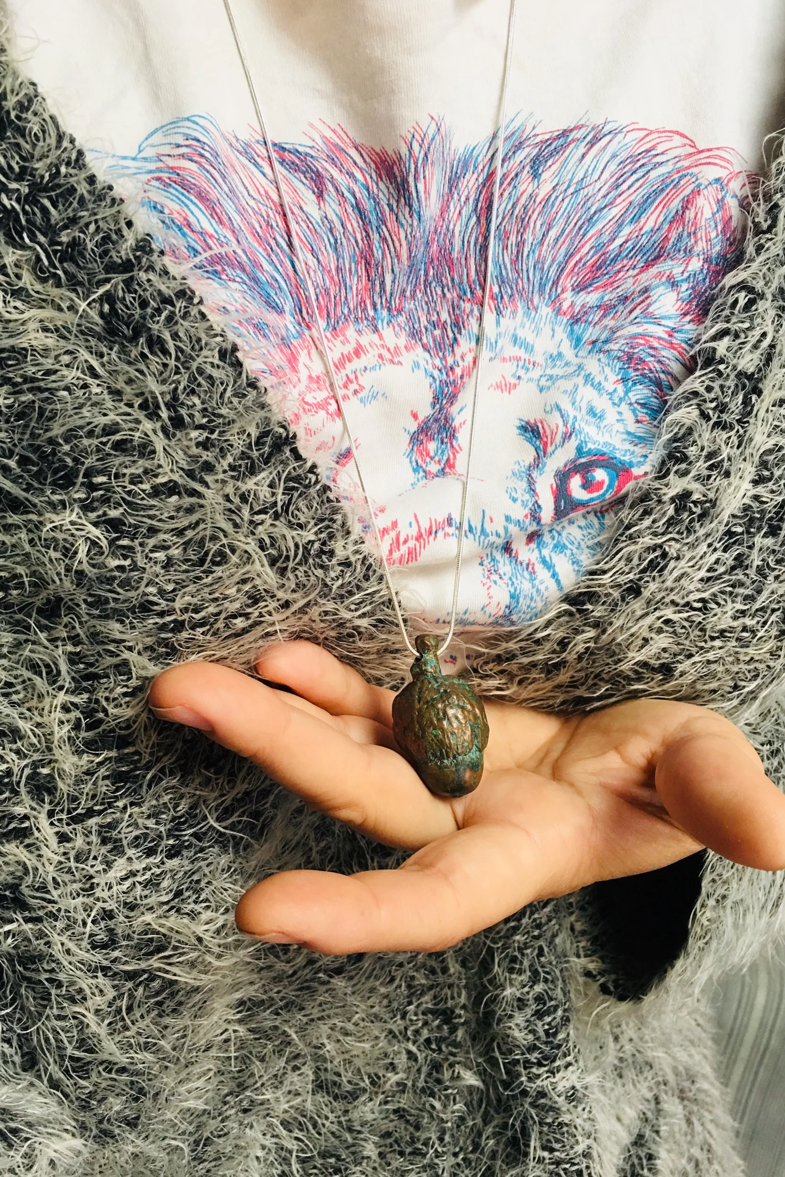 Large heavy California acorn pendant necklace with mixed copper chain. Choose between the two pieces: pure copper or copper with turquoise patina. Mixed thin and thick chain to balance the weight of the acorn.