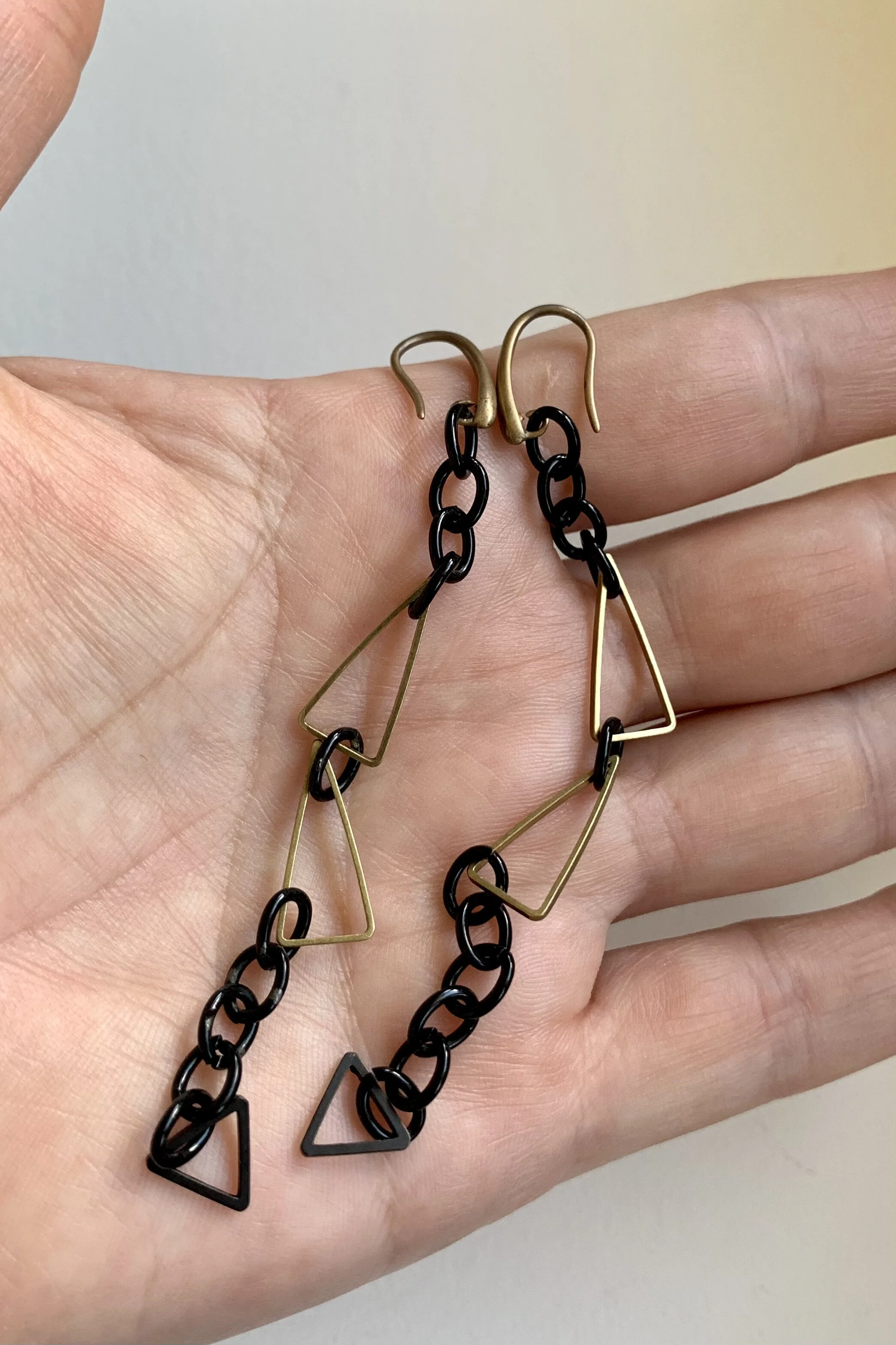Archives › Exaggeratingly Long black chain and triangle earrings Image 1 of 5 Image 2 of 5 Image 3 of 5 Image 4 of 5 Image 5 of 5 Exaggeratingly Long black chain and triangle earrings $46.00 sold out Sold Out Added!