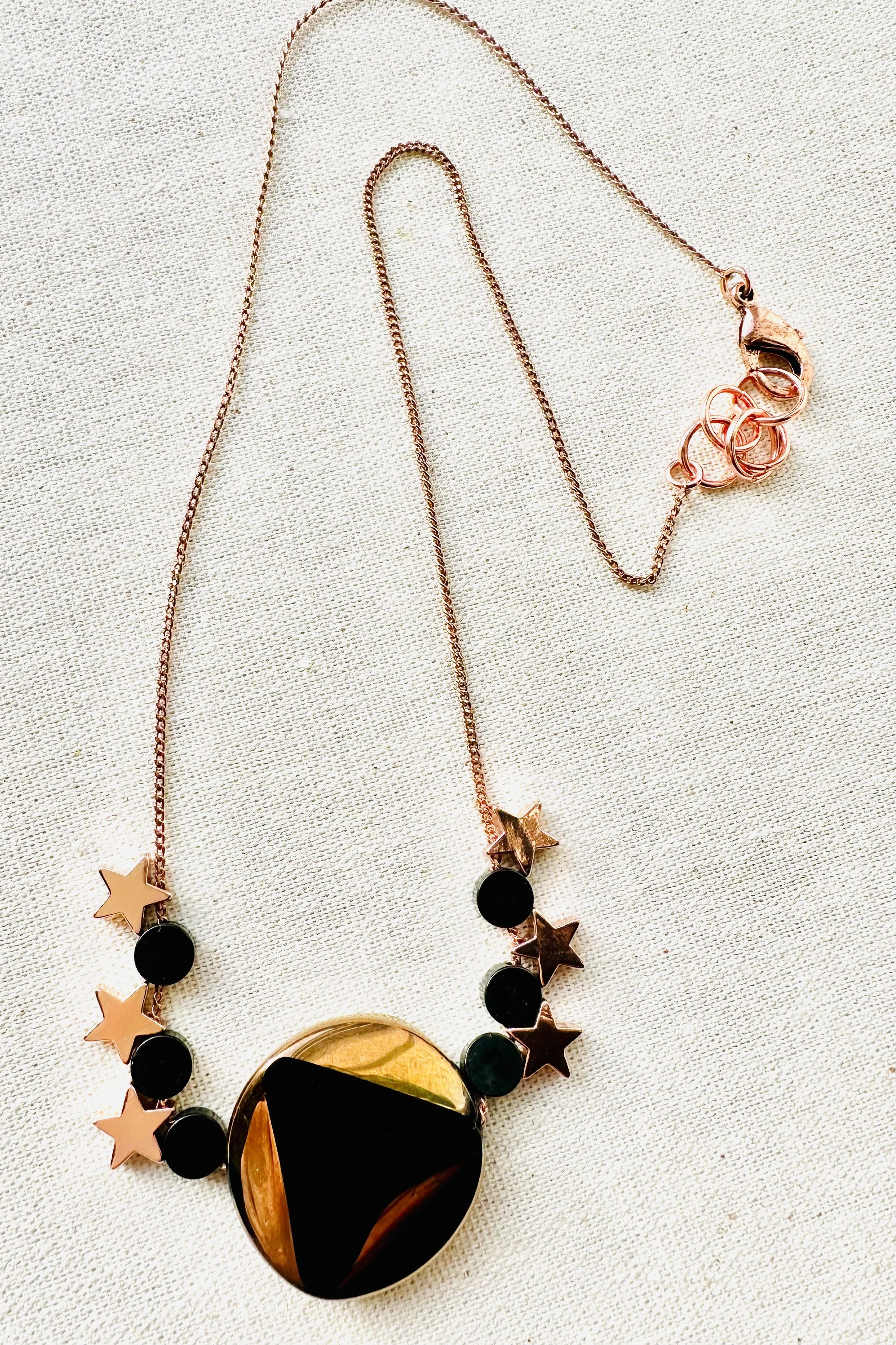 Archives › glass black gold triangle rose gold stars and black disco chain Image 1 of 5 Image 2 of 5 Image 3 of 5 Image 4 of 5 Image 5 of 5 glass black gold triangle rose gold stars and black disco chain $50.00 sold out Sold Out Added!