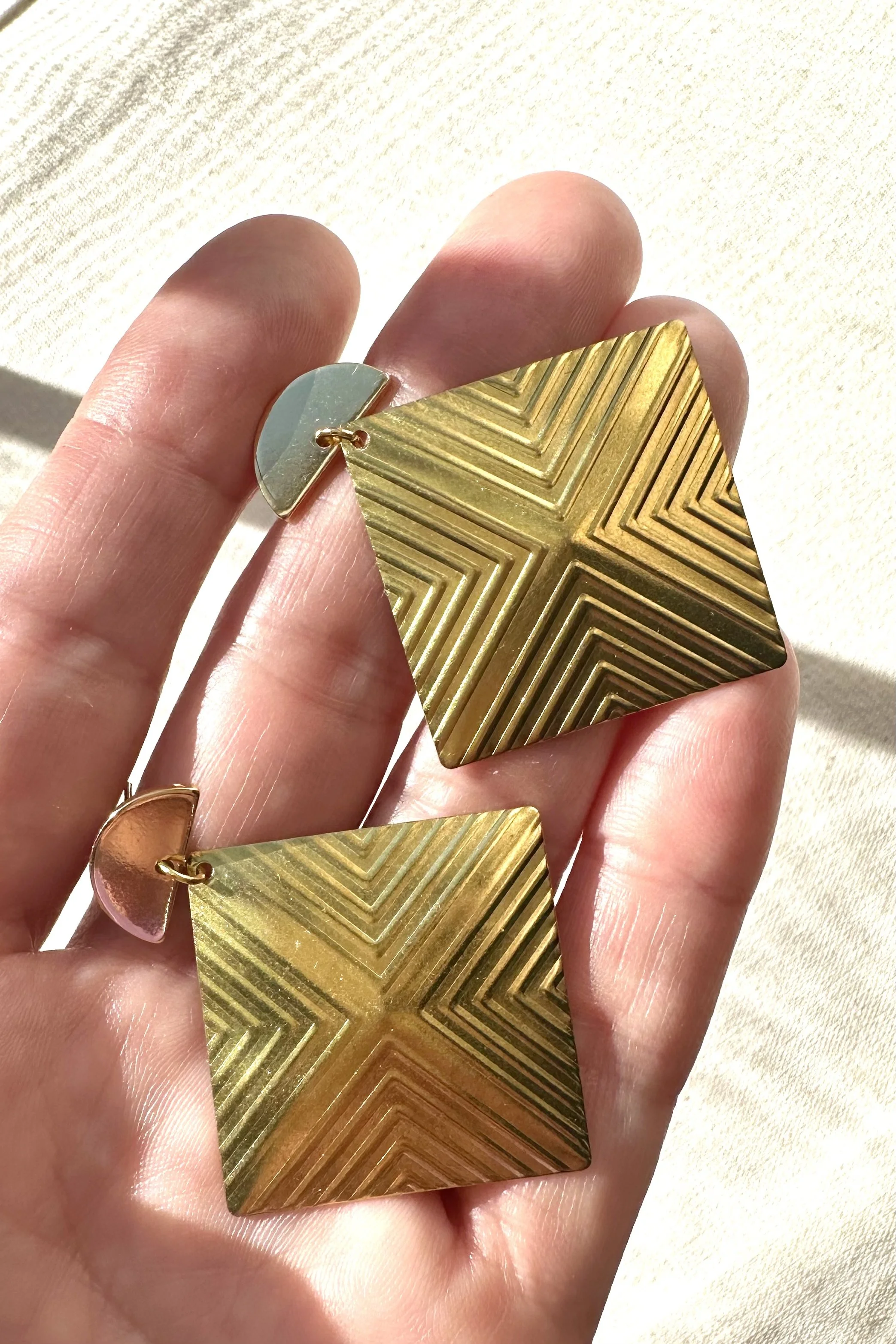 Archives › half circle studs with huge textured square dangle Image 1 of 4 Image 2 of 4 Image 3 of 4 Image 4 of 4 half circle studs with huge textured square dangle $50.00 sold out Sold Out Added!