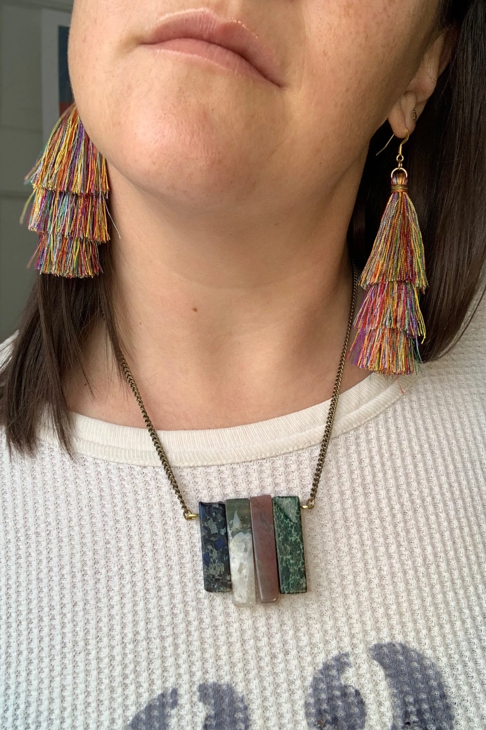 Mixed marbled Agate and Jasper spears in perfect rectangular arrangement.