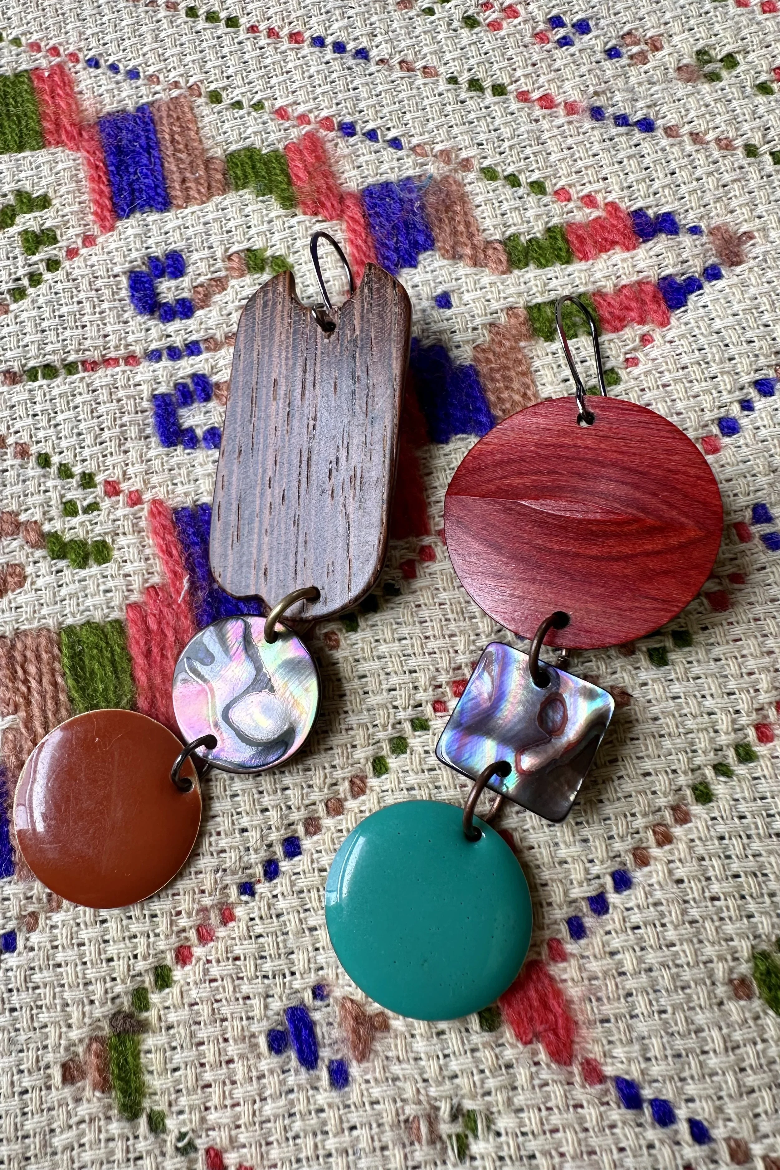 Archives › mismatched wooden, abalone, and enamel dangles Image 1 of 7 Image 2 of 7 Image 3 of 7 Image 4 of 7 Image 5 of 7 Image 6 of 7 Image 7 of 7 mismatched wooden, abalone, and enamel dangles $66.00 sold out Sold Out Added!