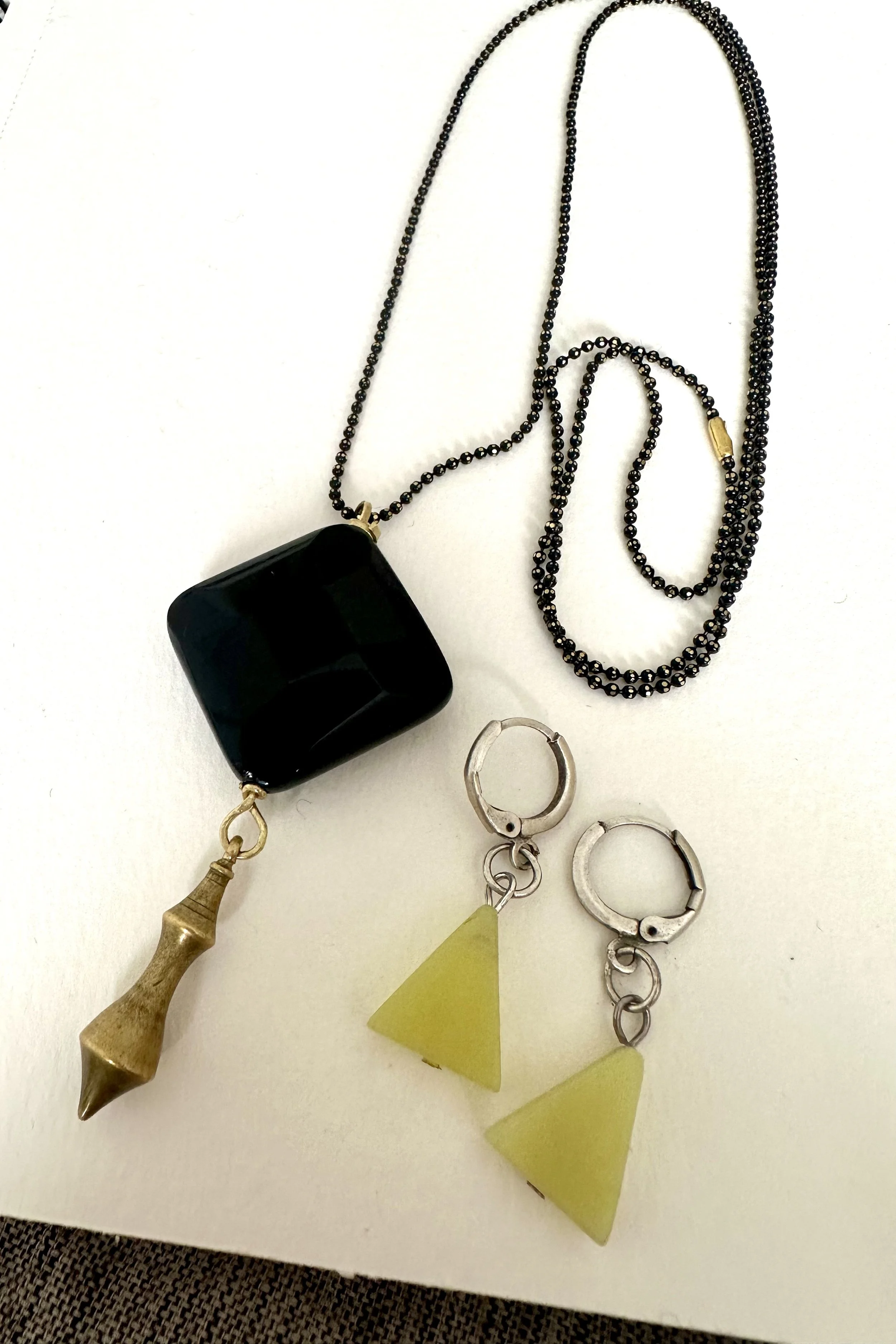 Archives › onyx faceted square and brass spiral drop necklace Image 1 of 7 Image 2 of 7 Image 3 of 7 Image 4 of 7 Image 5 of 7 Image 6 of 7 Image 7 of 7 onyx faceted square and brass spiral drop necklace $69.00 sold out Sold Out Added!