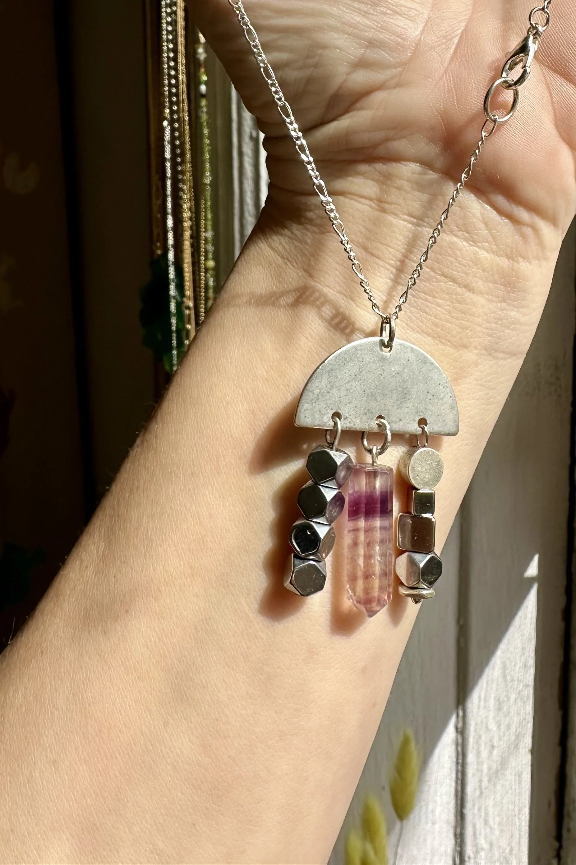 Archives › purple fluorite and sparkling stacks silver arc necklace Image 1 of 6 Image 2 of 6 Image 3 of 6 Image 4 of 6 Image 5 of 6 Image 6 of 6 purple fluorite and sparkling stacks silver arc necklace Sale Price: $36.00 Original Price: $50.00 sold out Sold Out Added!