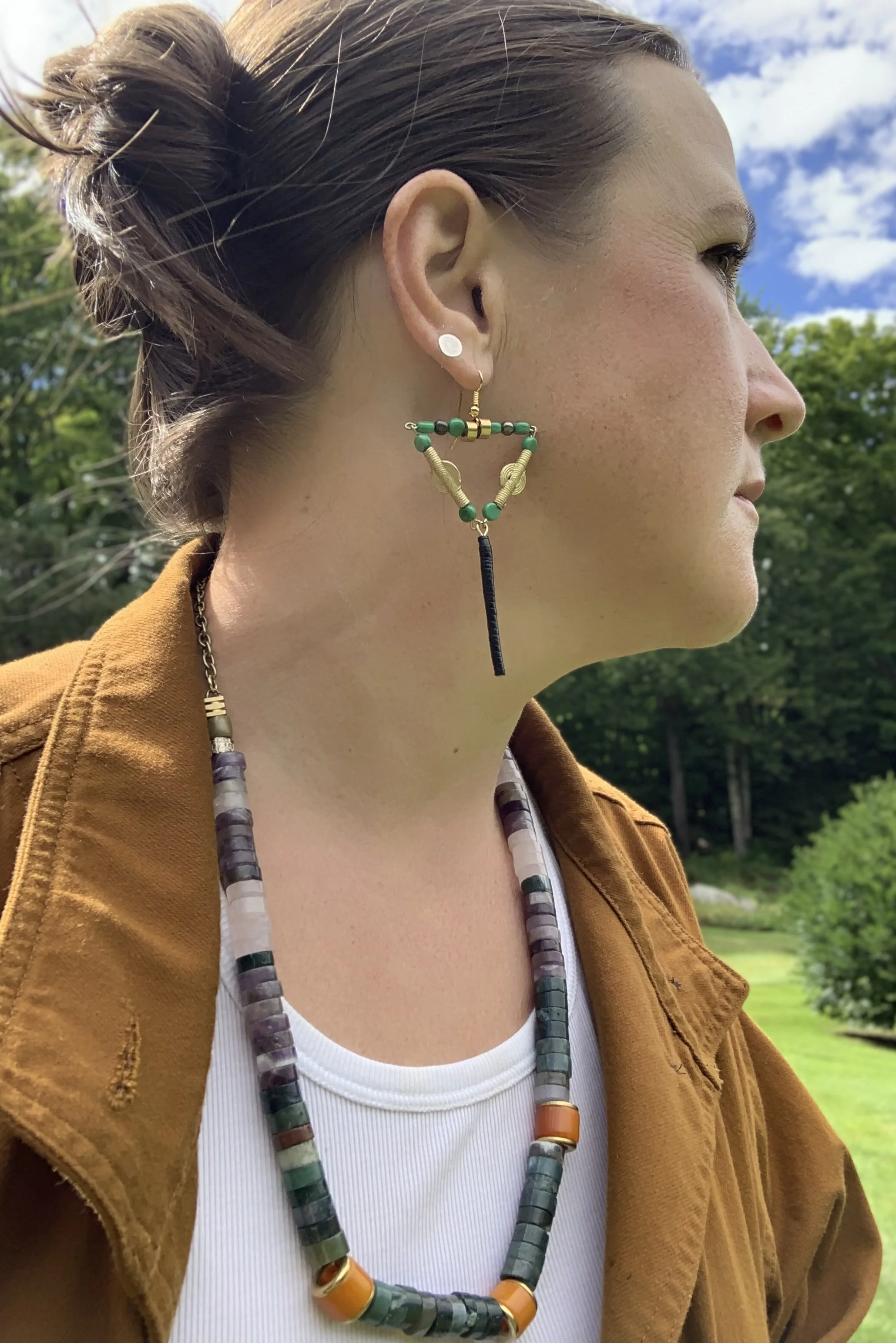 Archives › sculptural green glass brass spirals and black stacked dangle earrings Image 1 of 6 Image 2 of 6 Image 3 of 6 Image 4 of 6 Image 5 of 6 Image 6 of 6 sculptural green glass brass spirals and black stacked dangle earrings $60.00 sold out Sold Out Added!
