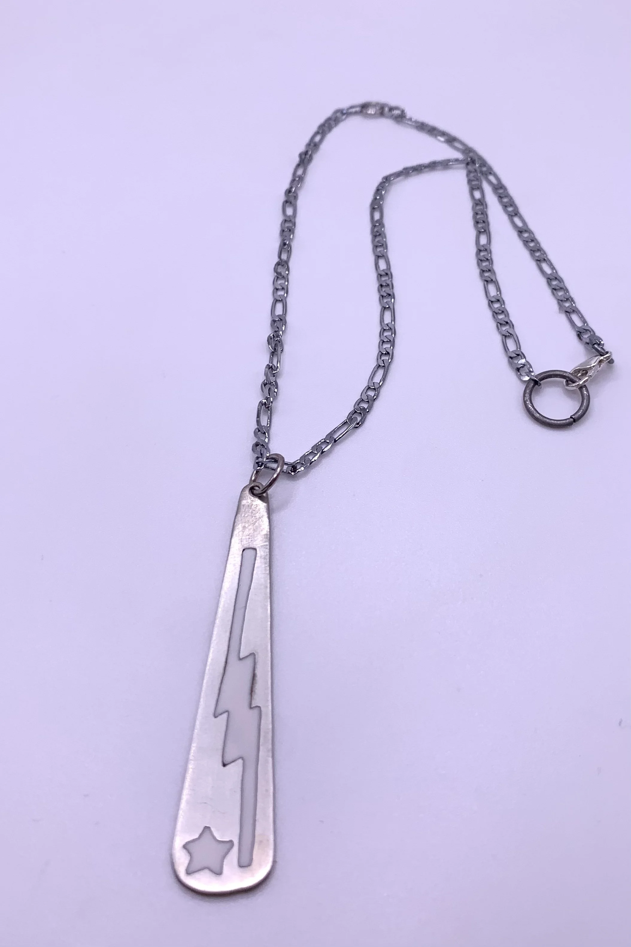 Archives › silver flat bar pendant with lightening bolt and star necklace Image 1 of 5 Image 2 of 5 Image 3 of 5 Image 4 of 5 Image 5 of 5 silver flat bar pendant with lightening bolt and star necklace $40.00 sold out Sold Out Added!
