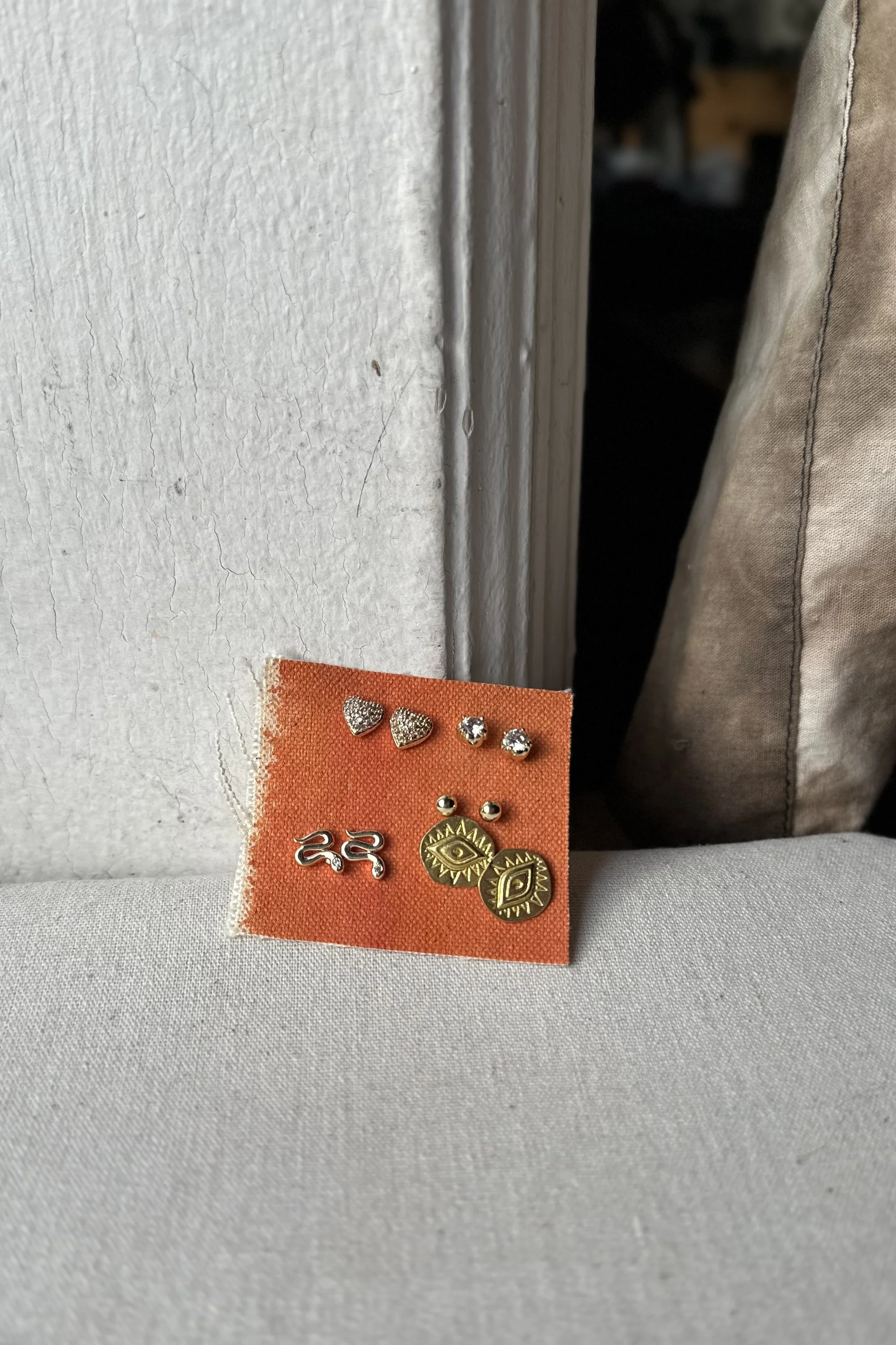 Archives › stud bundle: snakes, eyes, circle, hearts Image 1 of 3 Image 2 of 3 Image 3 of 3 stud bundle: snakes, eyes, circle, hearts $80.00 sold out Sold Out Added!