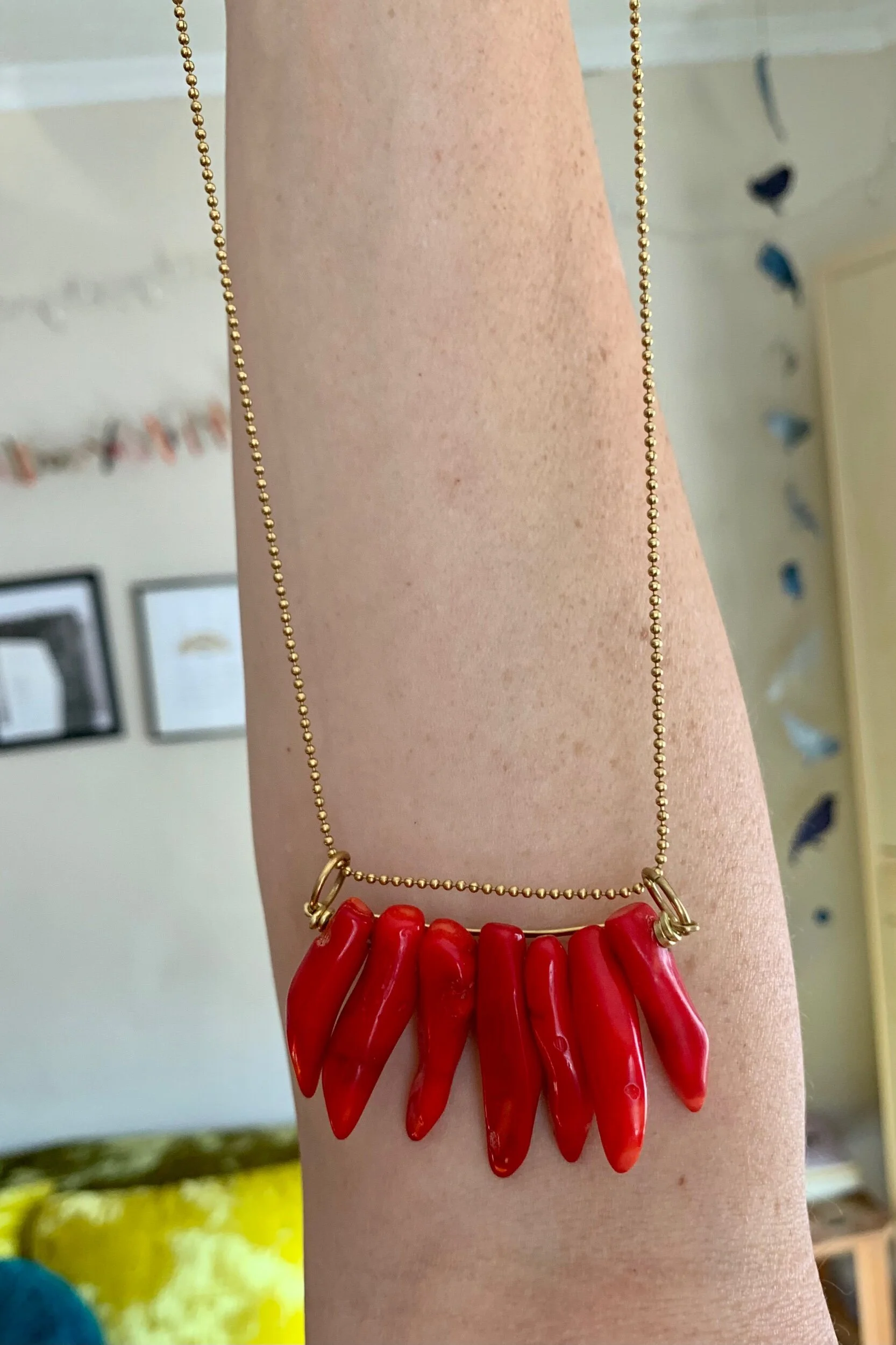 Archives › Coral chili pepper necklace Image 1 of 7 Image 2 of 7 Image 3 of 7 Image 4 of 7 Image 5 of 7 Image 6 of 7 Image 7 of 7 Coral chili pepper necklace $55.00 sold out Sold Out Added!