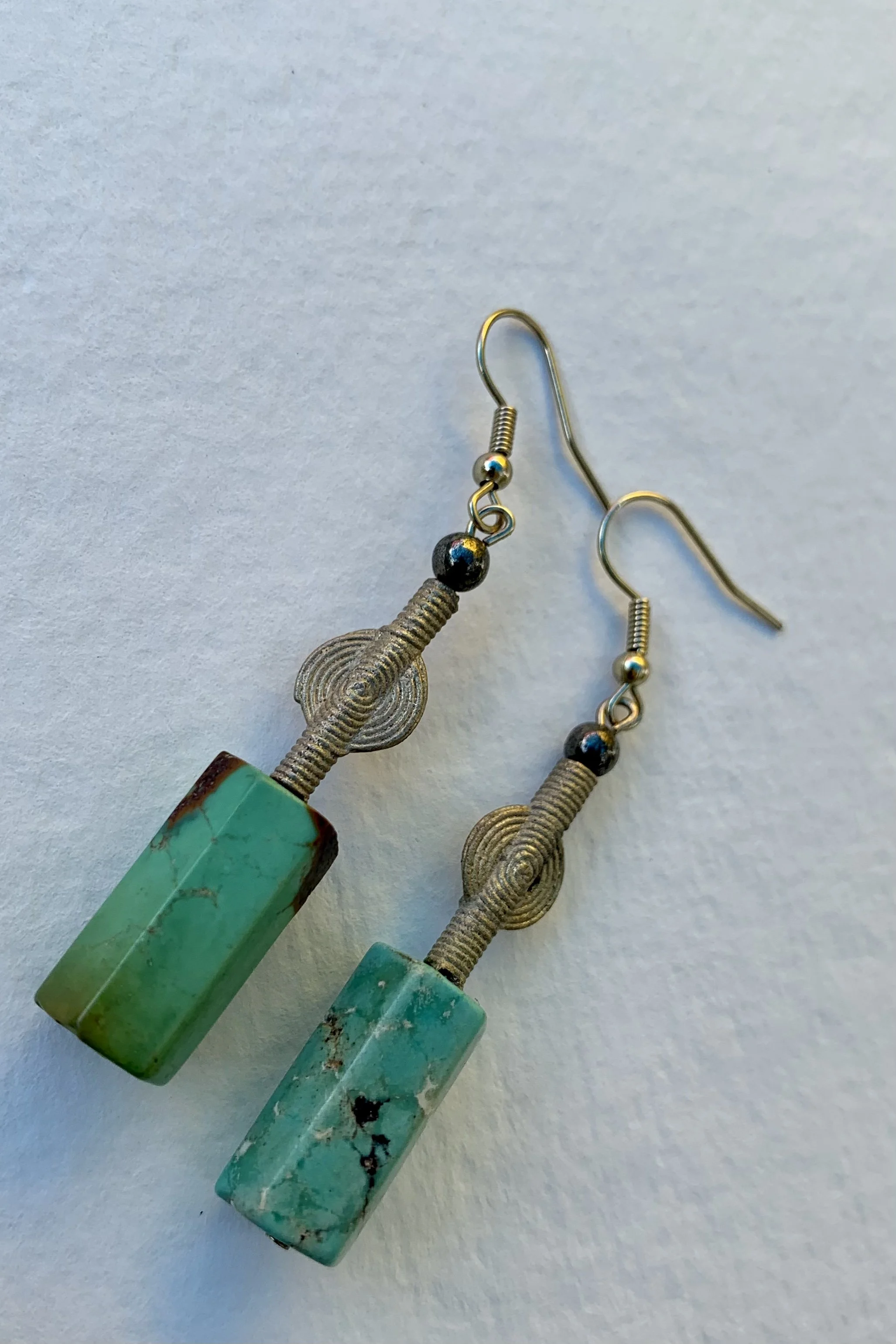 Archives › turquoise barrel and brass spiral dangles Image 1 of 5 Image 2 of 5 Image 3 of 5 Image 4 of 5 Image 5 of 5 turquoise barrel and brass spiral dangles $50.00 sold out Sold Out Added!