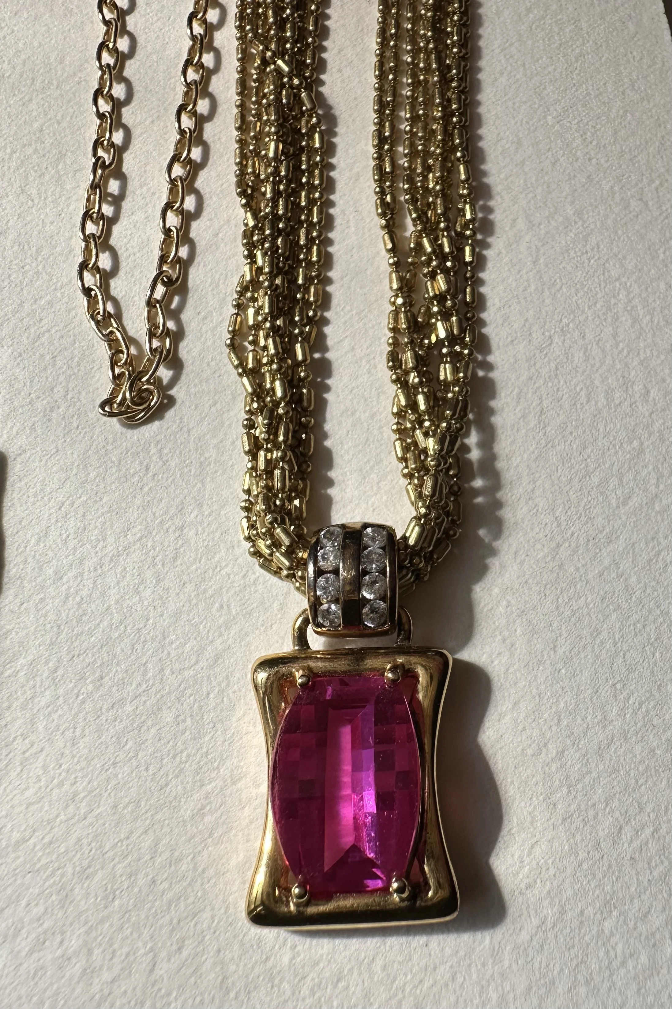 Archives › Vintage Fuchsia Dia Pendant on Sparkling Brass Multichain Necklace Image 1 of 9 Image 2 of 9 Image 3 of 9 Image 4 of 9 Image 5 of 9 Image 6 of 9 Image 7 of 9 Image 8 of 9 Image 9 of 9 Vintage Fuchsia Dia Pendant on Sparkling Brass Multichain Necklace $100.00 sold out Sold Out Added!