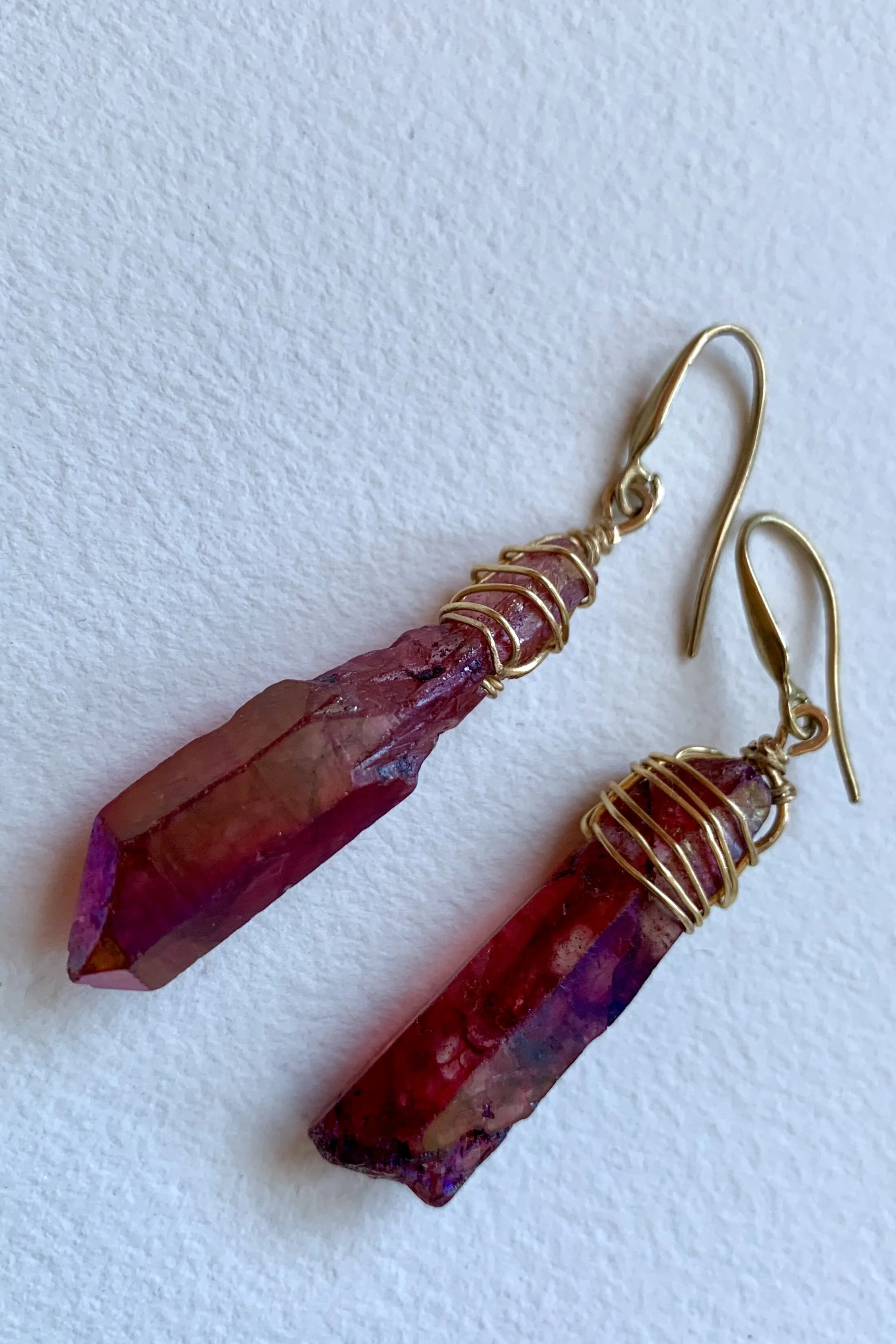 Archives › Wire Wrap Fuchsia Iridescent Quartz Earrings Image 1 of 6 Image 2 of 6 Image 3 of 6 Image 4 of 6 Image 5 of 6 Image 6 of 6 Wire Wrap Fuchsia Iridescent Quartz Earrings $46.00 sold out Sold Out Added!