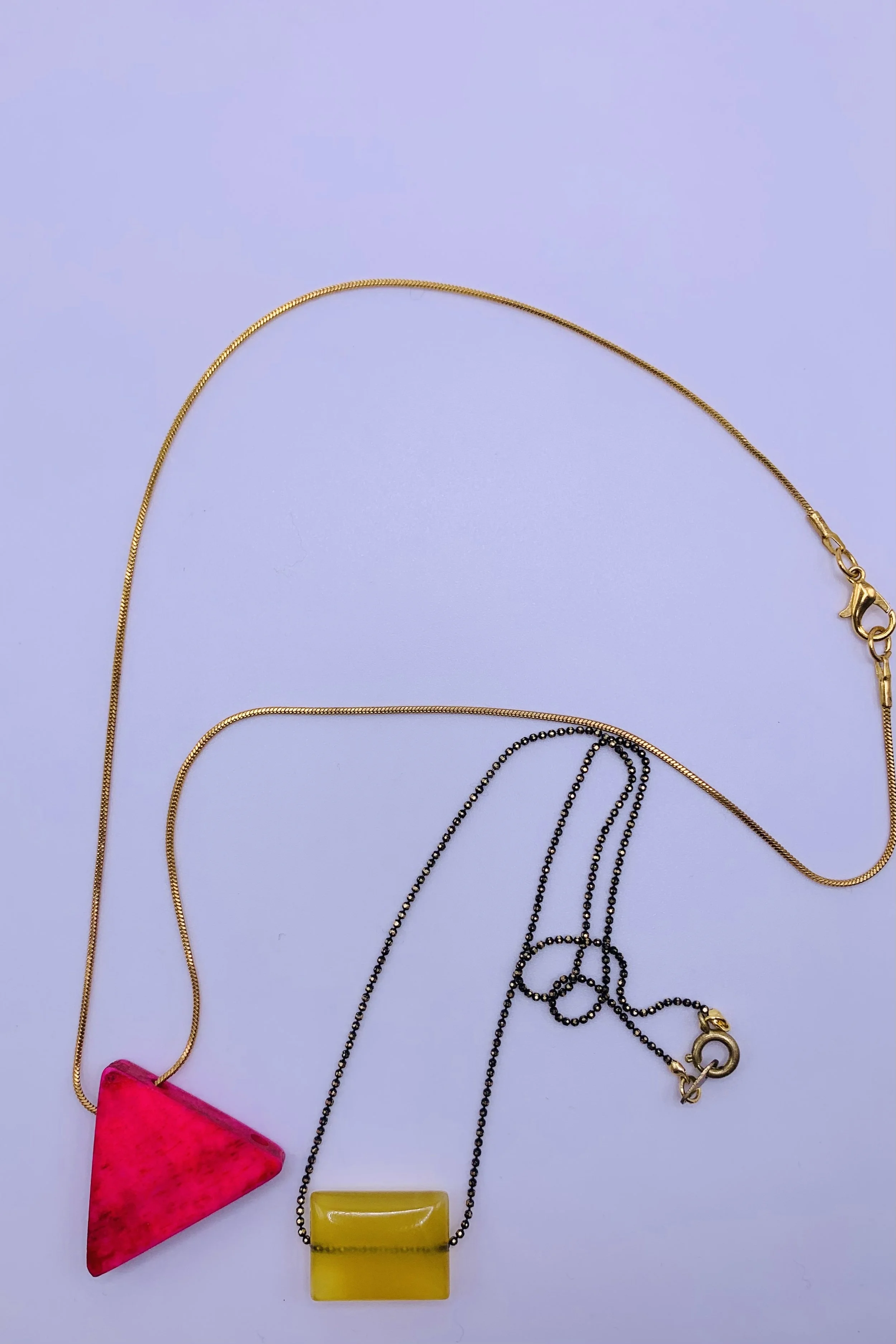 Archives › yellow agate rectangle and fuchsia triangle duo necklaces Image 1 of 6 Image 2 of 6 Image 3 of 6 Image 4 of 6 Image 5 of 6 Image 6 of 6 yellow agate rectangle and fuchsia triangle duo necklaces $50.00 sold out Sold Out Added!