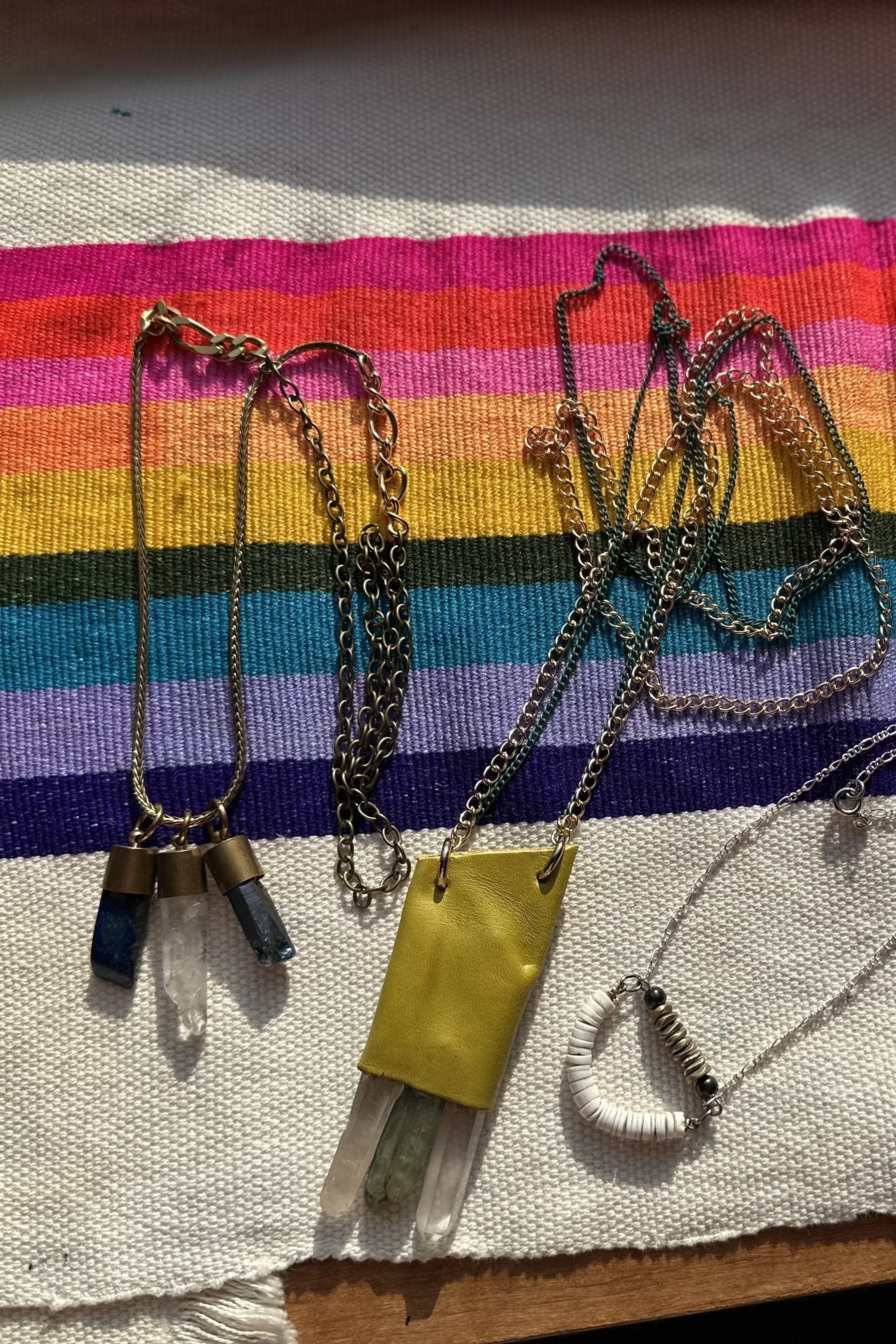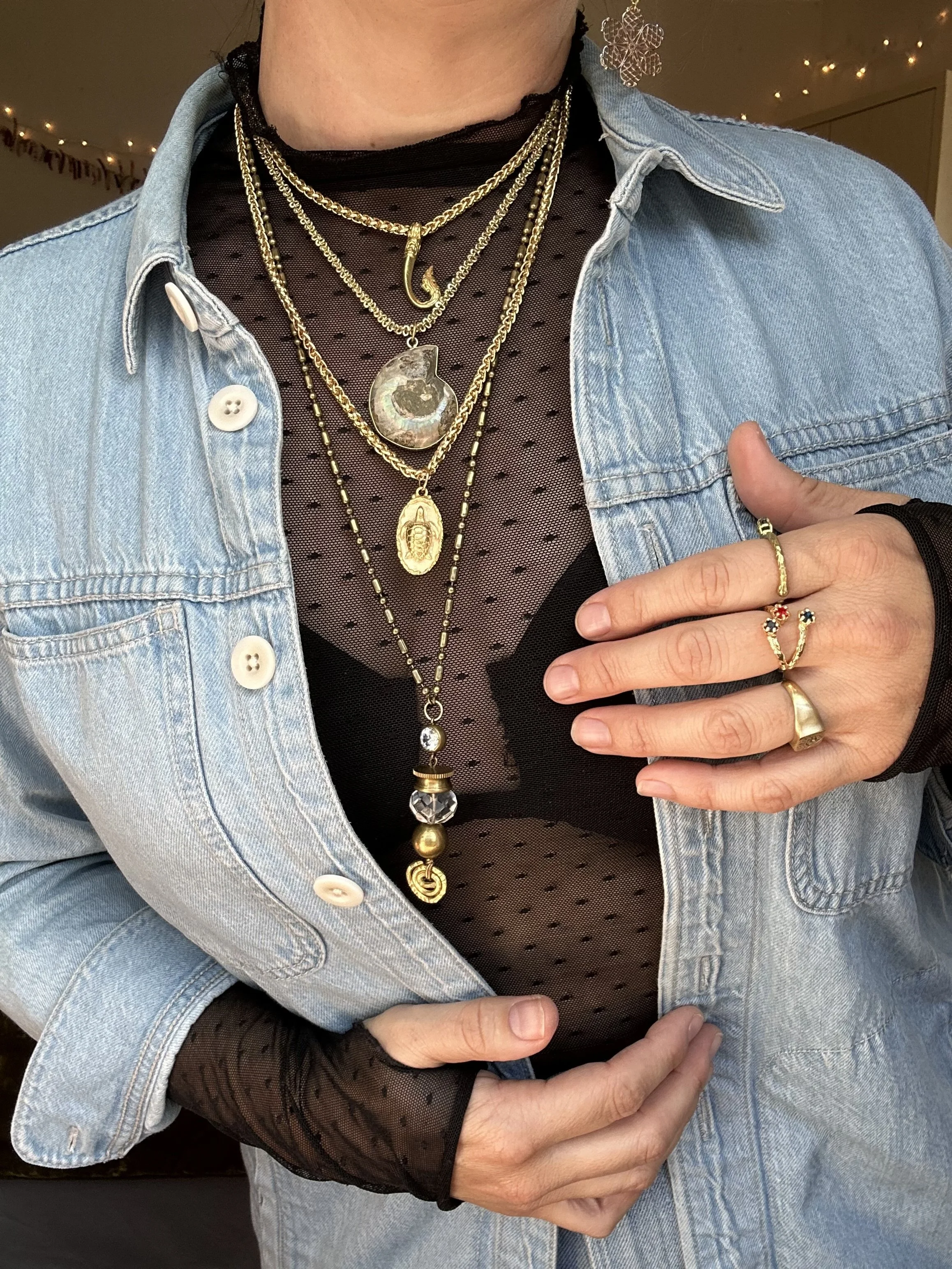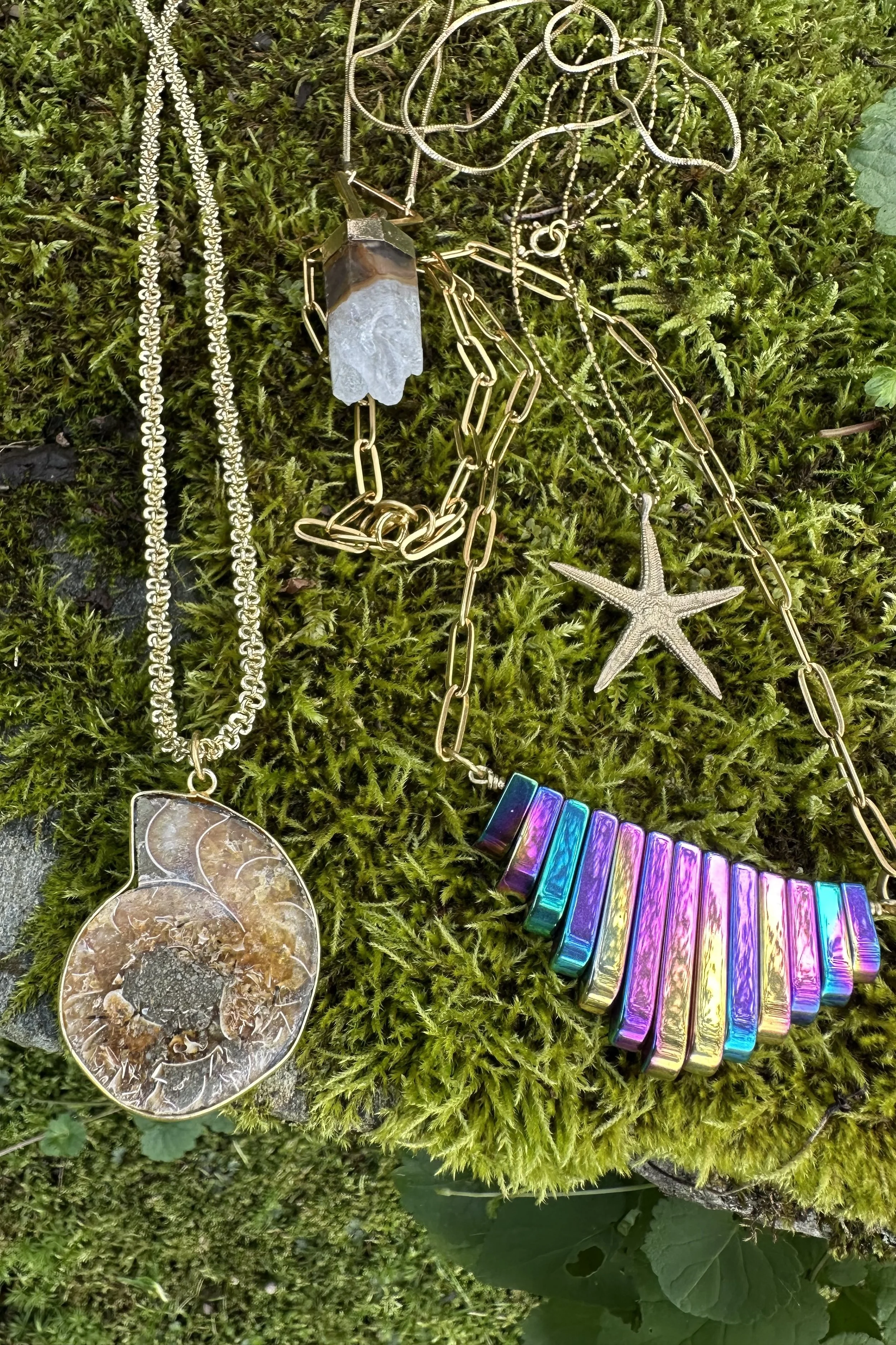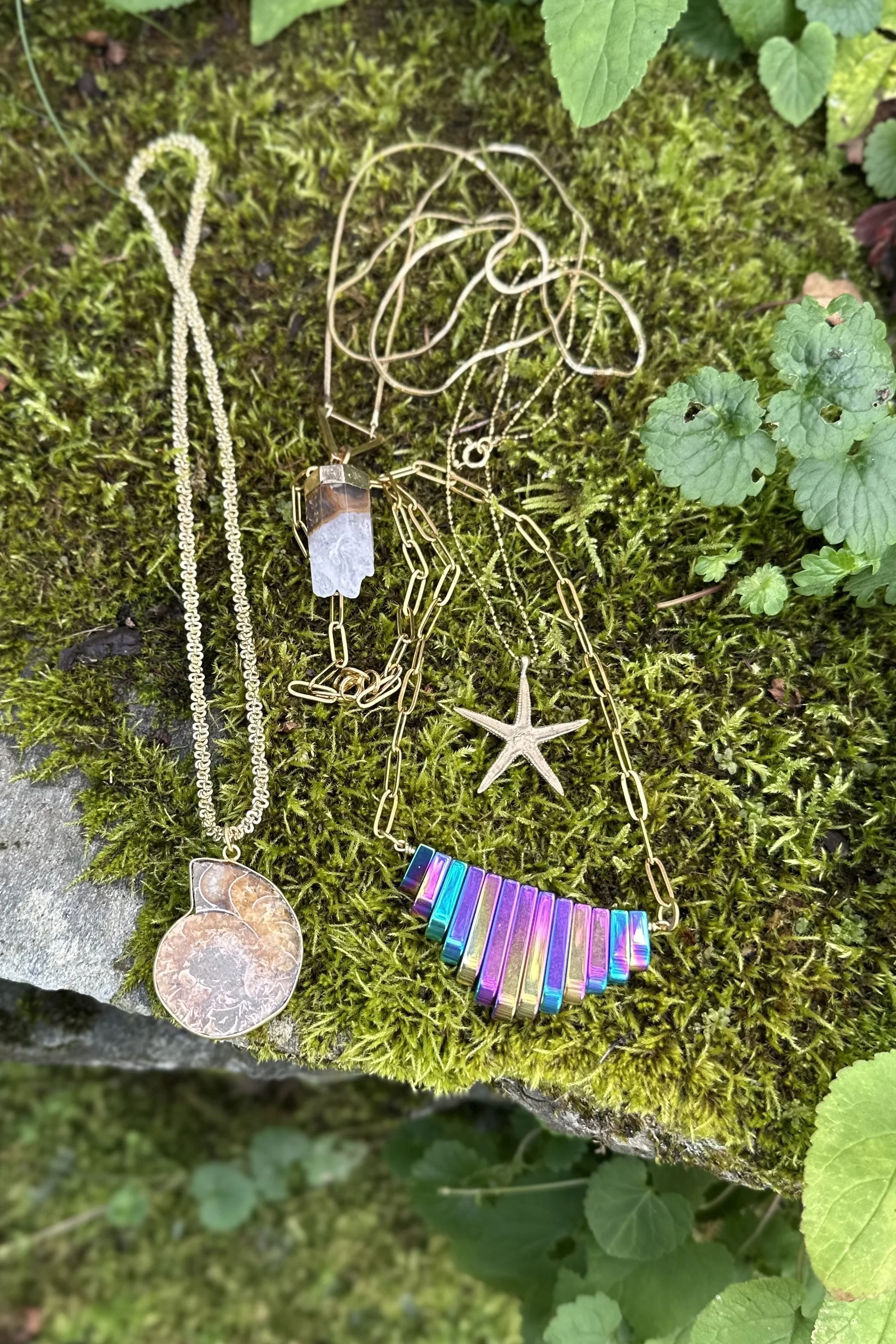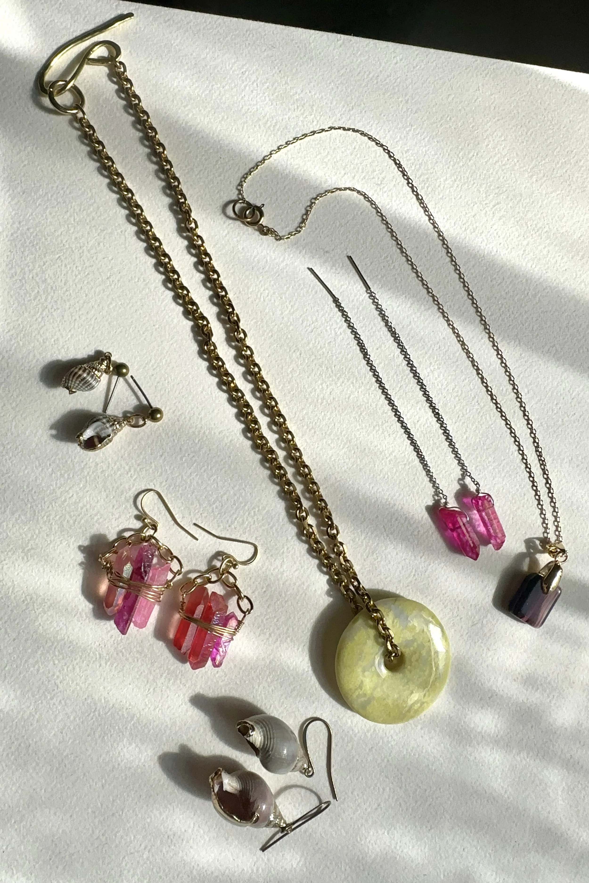 Pineapple Quartz Orb Necklace $65.00 Add To Cart Added! Amethyst Barrel Necklace $65.00 Add To Cart Added! rainbow gemstone arc necklace $50.00 Add To Cart Added! white, gold and peach geode beaded necklace $130.00 Add To Cart Added! luxe stone charm necklace $140.00 Add To Cart Added! three layering wand necklaces $120.00 Add To Cart Added! cz bling barrel and hook antique brass necklace $40.00 Add To Cart Added! serpentine jade disc necklace ii. $60.00 Add To Cart Added! brass horseshoe with textured bars necklace $65.00 Add To Cart Added! silver bling ring chain $65.00 Add To Cart Added! Lapis, Tiger Eye & Red Jasper Fan Necklace $50.00 Add To Cart Added! Bronze collected stick & ball chain necklace $86.00 Add To Cart Added! double lapis lazuli antiqued filigree cage necklace $60.00 Add To Cart Added! crescent moon lariat $50.00 Add To Cart Added! black enamel antique knife necklace $75.00 Add To Cart Added! Cz & Crystal Spiral Elongate Stack Necklace $86.00 Add To Cart Added! Double Stone Drop Turquoise Carnelian Necklace $60.00 Add To Cart Added! silver circle chain $40.00 Add To Cart Added! Blue Kyanite and Green Agate Ring Necklace $86.00 Add To Cart Added! Sun Burst on Matte Gold Chain $60.00 Add To Cart Added! Circle Golden Layering Duo $120.00 Add To Cart Added! Abalone Shield with Brass Spiral Shapes Woven Necklace $130.00 Add To Cart Added! Little Yellow Agate and Topaz Necklace $45.00 Add To Cart Added! Playful Eclectic Strung Necklace $86.00 Sold out Sold Out Added! GOLDEN Sculptural Void Necklace $75.00 Add To Cart Added! huge hammered hoop necklace $50.00 Add To Cart Added! Golden dimpled circle and brass weight pendant $60.00 Add To Cart Added! kyanite lariat dramatic brass and hematite beaded necklace $84.00 Add To Cart Added! Circle Front Calligraphy Clasp Chain $65.00 Add To Cart Added! organic gold pods smile chain $50.00 Add To Cart Added! ABALONE INLAID POCKET KNIFE NECKLACE from $80.00 Select Color pink multi-colored Both Add To Cart Added! Solid marked circle pendant $50.00 Sold out Sold Out Added! Ammonite on Wave Chain $65.00 Add To Cart Added! tiny anatomical heart $65.00 Add To Cart Added! serpentine jade disc necklace $60.00 Sold out Sold Out Added! Seafoam Lighthouse with Starbust Beaded Array $80.00 Add To Cart Added! AMMONITE ON GOLDEN SQUIGGLE CHAIN $80.00 Add To Cart Added! D-Ring Brass Structure Necklaces from $60.00 Select Size big small both Add To Cart Added! ametrine and pietersite stacked delicate necklace $64.00 Add To Cart Added! hook horn on woven chain $50.00 Add To Cart Added! blue cracked agate beaded orb necklace $45.00 Add To Cart Added! hand forged front large clasp mixed chain $45.00 Add To Cart Added! Vintage elizabethian chain collar $64.00 Add To Cart Added! Fleur-de-Lis Golden Necklace $40.00 Add To Cart Added! woven chain with golden turtle pendant $65.00 Add To Cart Added! matte chain with huge toggle clasp $65.00 Sold out Sold Out Added! tiny wire-wrapped raw emerald $50.00 Add To Cart Added! faceted onyx elongated lighthouse necklace $78.00 Add To Cart Added! purple glass rectangle necklace $40.00 Add To Cart Added! bold yellow agate spears ii $65.00 Sold out Sold Out Added! yellow agate watch chain lariat necklace $75.00 Add To Cart Added! sterling silver spiral chain lariat $80.00 Add To Cart Added! sterling silver spiral chain with t-bar $80.00 Sold out Sold Out Added! cloisonne vintage fish clasp-add-on circle chain necklace $80.00 green blue Add To Cart Added! mesh chain with blingy stone altar $88.00 Sold out Sold Out Added! bold steel railroad chain with connector rings $54.00 Add To Cart Added! super long freshwater pearl strand $120.00 Add To Cart Added! green agate ring and pink lighthouse necklace $70.00 Add To Cart Added! red agate rhombus necklace $65.00 Sold out Sold Out Added! magical elixir gemstone beaded necklace $120.00 Add To Cart Added! tiny textured t-bar chain $40.00 Sold out Sold Out Added! quartz and carnelian orb delicate layering necklaces $60.00 Sold out Sold Out Added! vintage solid bejeweled squirrel necklace $80.00 Sold out Sold Out Added! wavy chalcedony collar $65.00 Add To Cart Added! heart burst with hand-forged clasp iii. $68.00 Sold out Sold Out Added! Brass Pods Smile Chain $40.00 Add To Cart Added! Lapis Lazuli Spears with Dramatic Chain $75.00 Sold out Sold Out Added! triple wand on luxe chain $82.00 Sold out Sold Out Added! YELLOW QUARTZ WAND TORTOISE RING PURPLE CHAIN $55.00 Add To Cart Added! blue dip dyed rope yellow glass and wooden columns necklace $95.00 Sold out Sold Out Added! fluorite and yellow onxy points ft brass square pendant duos $60.00 Add To Cart Added! crushed red agate shield pendant $55.00 Add To Cart Added! antique silver zipper lariat necklace $50.00 Add To Cart Added! TWO ANTIQUE KEYS LAYERING NECKLACES iii. $86.00 Add To Cart Added! Textured Circle Front Clasp Chain $60.00 Sold out Sold Out Added! magenta and carnelian crystal collar $68.00 Sold out Sold Out Added! Golden Bundle; 3 necklaces $144.00 Sold out Sold Out Added! Abalone Square Stack with Beaded Elegance Necklace $65.00 Add To Cart Added! Aqua Terra and Red Creek Jasper Fan Necklace $86.00 Sold out Sold Out Added! brass t-horn necklace $55.00 Add To Cart Added! Sun Burst with Front Clasp Chain Necklace $68.00 Sold out Sold Out Added! Opalite Lighthouse Necklace $75.00 Add To Cart Added! Stone Curiosity Cabinet Necklace $125.00 Add To Cart Added! Rough Black Tourmaline with Dalmatian Jasper Ring $80.00 Add To Cart Added! Huge rough cut clear quartz necklace $60.00 Add To Cart Added! heart burst on paperclip chain $60.00 Sold out Sold Out Added! tiny freshwater pearl drop $50.00 Sold out Sold Out Added! front hammered hoop and hand-forged clasp necklace $55.00 Sold out Sold Out Added! vintage coin and moonstone on luxe bow knot chain $75.00 Add To Cart Added! wavy ring dimple brass handmade mixed metal chain $68.00 Add To Cart Added! Crushed Pyrite and Golden Quartz Shield Necklace $86.00 Add To Cart Added!
