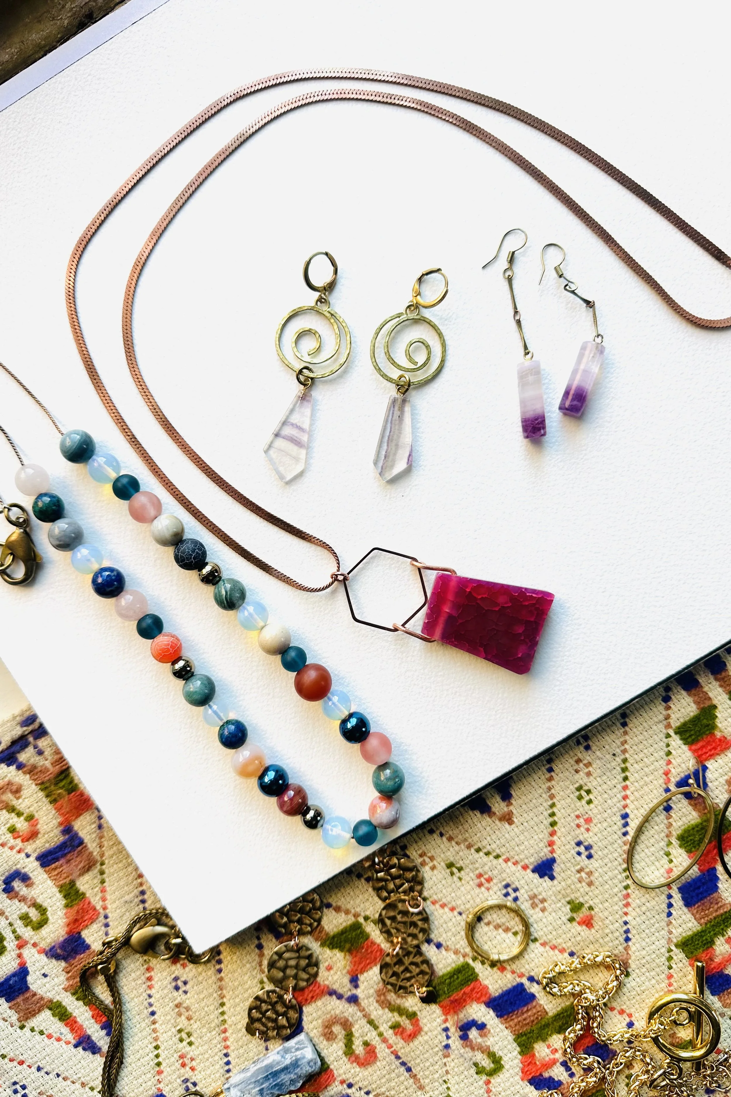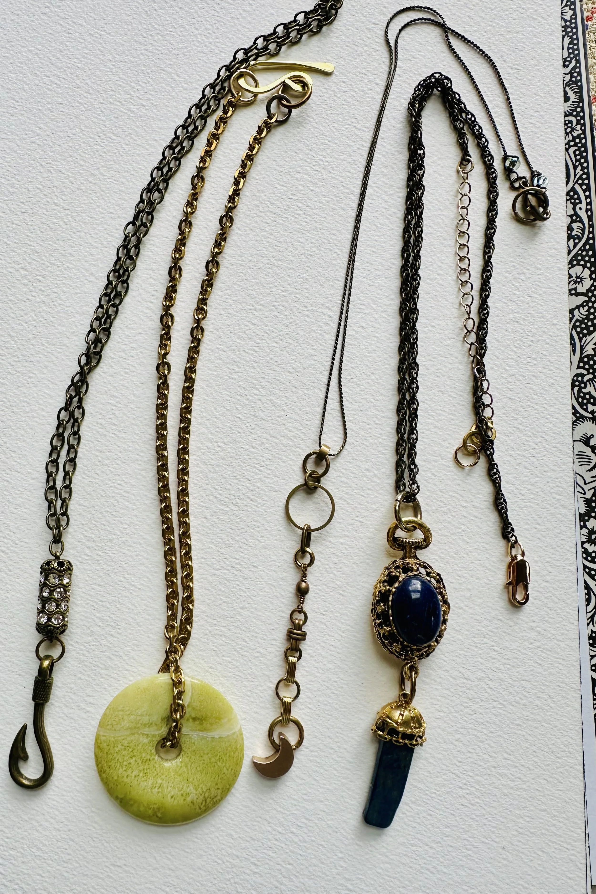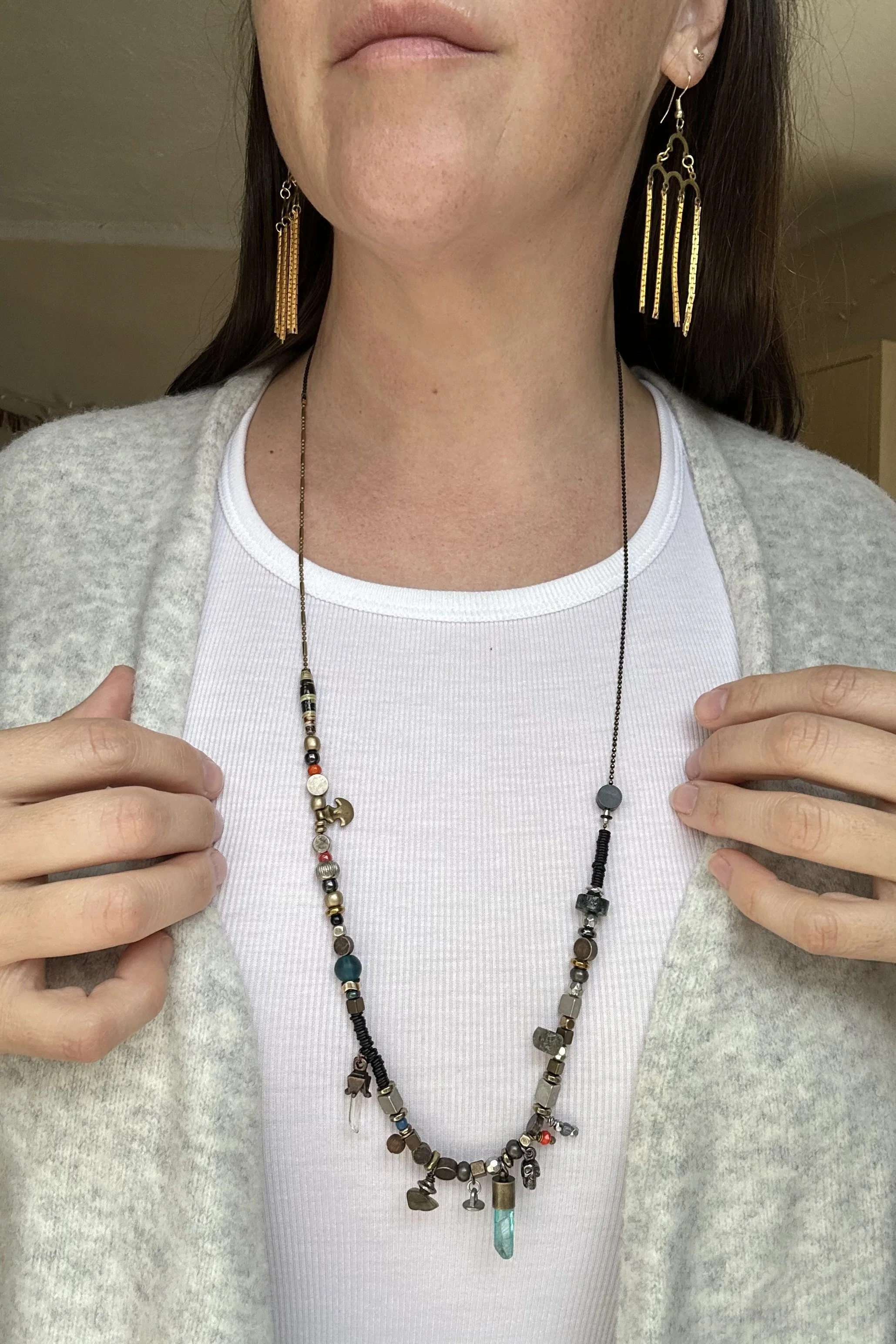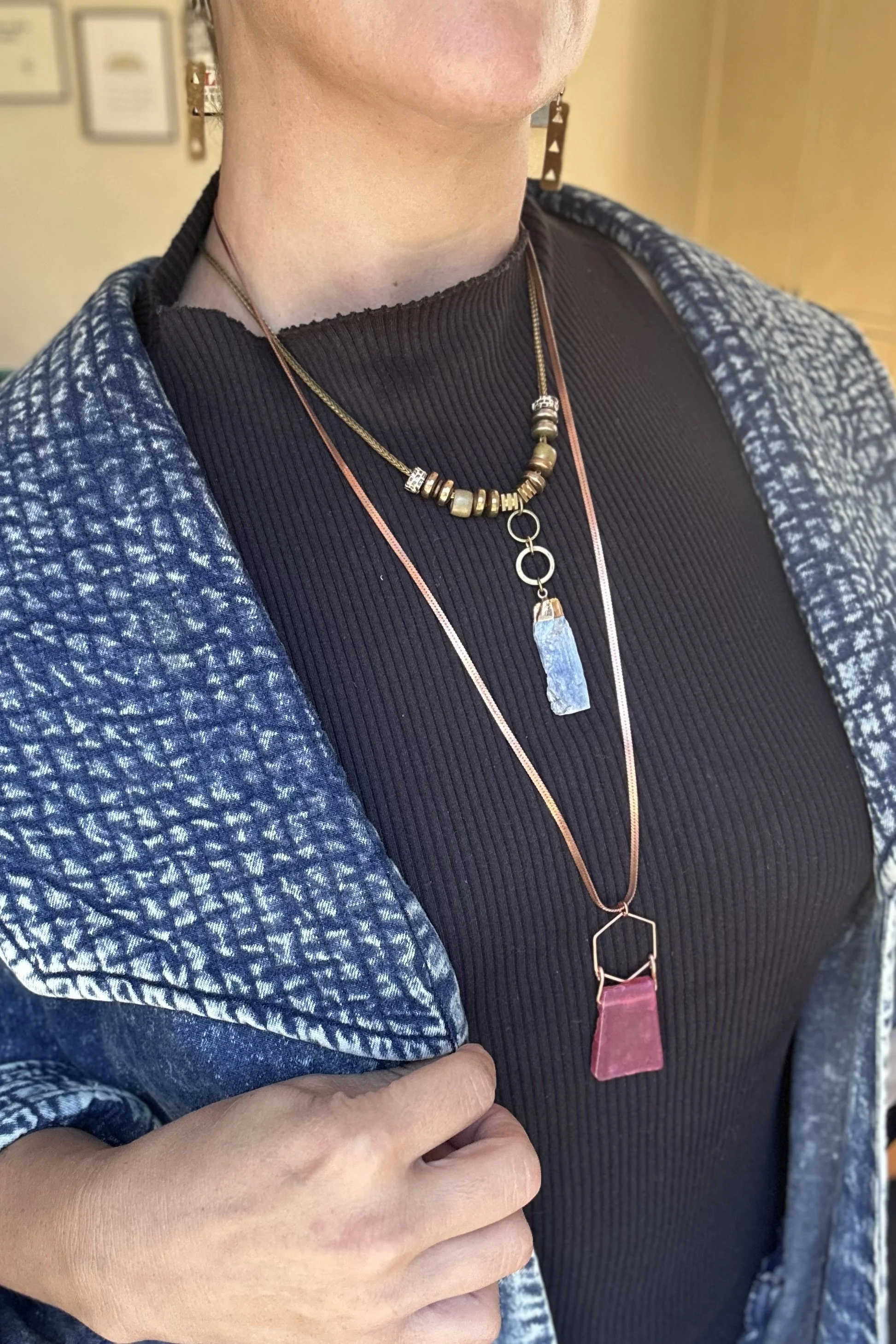 Pineapple Quartz Orb Necklace $65.00 Add To Cart Added! Amethyst Barrel Necklace $65.00 Add To Cart Added! rainbow gemstone arc necklace $50.00 Add To Cart Added! white, gold and peach geode beaded necklace $130.00 Add To Cart Added! luxe stone charm necklace $140.00 Add To Cart Added! three layering wand necklaces $120.00 Add To Cart Added! cz bling barrel and hook antique brass necklace $40.00 Add To Cart Added! serpentine jade disc necklace ii. $60.00 Add To Cart Added! brass horseshoe with textured bars necklace $65.00 Add To Cart Added! silver bling ring chain $65.00 Add To Cart Added! Lapis, Tiger Eye & Red Jasper Fan Necklace $50.00 Add To Cart Added! Bronze collected stick & ball chain necklace $86.00 Add To Cart Added! double lapis lazuli antiqued filigree cage necklace $60.00 Add To Cart Added! crescent moon lariat $50.00 Add To Cart Added! black enamel antique knife necklace $75.00 Add To Cart Added! Cz & Crystal Spiral Elongate Stack Necklace $86.00 Add To Cart Added! Double Stone Drop Turquoise Carnelian Necklace $60.00 Add To Cart Added! silver circle chain $40.00 Add To Cart Added! Blue Kyanite and Green Agate Ring Necklace $86.00 Add To Cart Added! Sun Burst on Matte Gold Chain $60.00 Add To Cart Added! Circle Golden Layering Duo $120.00 Add To Cart Added! Abalone Shield with Brass Spiral Shapes Woven Necklace $130.00 Add To Cart Added! Little Yellow Agate and Topaz Necklace $45.00 Add To Cart Added! Playful Eclectic Strung Necklace $86.00 Sold out Sold Out Added! GOLDEN Sculptural Void Necklace $75.00 Add To Cart Added! huge hammered hoop necklace $50.00 Add To Cart Added! Golden dimpled circle and brass weight pendant $60.00 Add To Cart Added! kyanite lariat dramatic brass and hematite beaded necklace $84.00 Add To Cart Added! Circle Front Calligraphy Clasp Chain $65.00 Add To Cart Added! organic gold pods smile chain $50.00 Add To Cart Added! ABALONE INLAID POCKET KNIFE NECKLACE from $80.00 Select Color pink multi-colored Both Add To Cart Added! Solid marked circle pendant $50.00 Sold out Sold Out Added! Ammonite on Wave Chain $65.00 Add To Cart Added! tiny anatomical heart $65.00 Add To Cart Added! serpentine jade disc necklace $60.00 Sold out Sold Out Added! Seafoam Lighthouse with Starbust Beaded Array $80.00 Add To Cart Added! AMMONITE ON GOLDEN SQUIGGLE CHAIN $80.00 Add To Cart Added! D-Ring Brass Structure Necklaces from $60.00 Select Size big small both Add To Cart Added! ametrine and pietersite stacked delicate necklace $64.00 Add To Cart Added! hook horn on woven chain $50.00 Add To Cart Added! blue cracked agate beaded orb necklace $45.00 Add To Cart Added! hand forged front large clasp mixed chain $45.00 Add To Cart Added! Vintage elizabethian chain collar $64.00 Add To Cart Added! Fleur-de-Lis Golden Necklace $40.00 Add To Cart Added! woven chain with golden turtle pendant $65.00 Add To Cart Added! matte chain with huge toggle clasp $65.00 Sold out Sold Out Added! tiny wire-wrapped raw emerald $50.00 Add To Cart Added! faceted onyx elongated lighthouse necklace $78.00 Add To Cart Added! purple glass rectangle necklace $40.00 Add To Cart Added! bold yellow agate spears ii $65.00 Sold out Sold Out Added! yellow agate watch chain lariat necklace $75.00 Add To Cart Added! sterling silver spiral chain lariat $80.00 Add To Cart Added! sterling silver spiral chain with t-bar $80.00 Sold out Sold Out Added! cloisonne vintage fish clasp-add-on circle chain necklace $80.00 green blue Add To Cart Added! mesh chain with blingy stone altar $88.00 Sold out Sold Out Added! bold steel railroad chain with connector rings $54.00 Add To Cart Added! super long freshwater pearl strand $120.00 Add To Cart Added! green agate ring and pink lighthouse necklace $70.00 Add To Cart Added! red agate rhombus necklace $65.00 Sold out Sold Out Added! magical elixir gemstone beaded necklace $120.00 Add To Cart Added! tiny textured t-bar chain $40.00 Sold out Sold Out Added! quartz and carnelian orb delicate layering necklaces $60.00 Sold out Sold Out Added! vintage solid bejeweled squirrel necklace $80.00 Sold out Sold Out Added! wavy chalcedony collar $65.00 Add To Cart Added! heart burst with hand-forged clasp iii. $68.00 Sold out Sold Out Added! Brass Pods Smile Chain $40.00 Add To Cart Added! Lapis Lazuli Spears with Dramatic Chain $75.00 Sold out Sold Out Added! triple wand on luxe chain $82.00 Sold out Sold Out Added! YELLOW QUARTZ WAND TORTOISE RING PURPLE CHAIN $55.00 Add To Cart Added! blue dip dyed rope yellow glass and wooden columns necklace $95.00 Sold out Sold Out Added! fluorite and yellow onxy points ft brass square pendant duos $60.00 Add To Cart Added! crushed red agate shield pendant $55.00 Add To Cart Added! antique silver zipper lariat necklace $50.00 Add To Cart Added! TWO ANTIQUE KEYS LAYERING NECKLACES iii. $86.00 Add To Cart Added! Textured Circle Front Clasp Chain $60.00 Sold out Sold Out Added! magenta and carnelian crystal collar $68.00 Sold out Sold Out Added! Golden Bundle; 3 necklaces $144.00 Sold out Sold Out Added! Abalone Square Stack with Beaded Elegance Necklace $65.00 Add To Cart Added! Aqua Terra and Red Creek Jasper Fan Necklace $86.00 Sold out Sold Out Added! brass t-horn necklace $55.00 Add To Cart Added! Sun Burst with Front Clasp Chain Necklace $68.00 Sold out Sold Out Added! Opalite Lighthouse Necklace $75.00 Add To Cart Added! Stone Curiosity Cabinet Necklace $125.00 Add To Cart Added! Rough Black Tourmaline with Dalmatian Jasper Ring $80.00 Add To Cart Added! Huge rough cut clear quartz necklace $60.00 Add To Cart Added! heart burst on paperclip chain $60.00 Sold out Sold Out Added! tiny freshwater pearl drop $50.00 Sold out Sold Out Added! front hammered hoop and hand-forged clasp necklace $55.00 Sold out Sold Out Added! vintage coin and moonstone on luxe bow knot chain $75.00 Add To Cart Added! wavy ring dimple brass handmade mixed metal chain $68.00 Add To Cart Added! Crushed Pyrite and Golden Quartz Shield Necklace $86.00 Add To Cart Added!