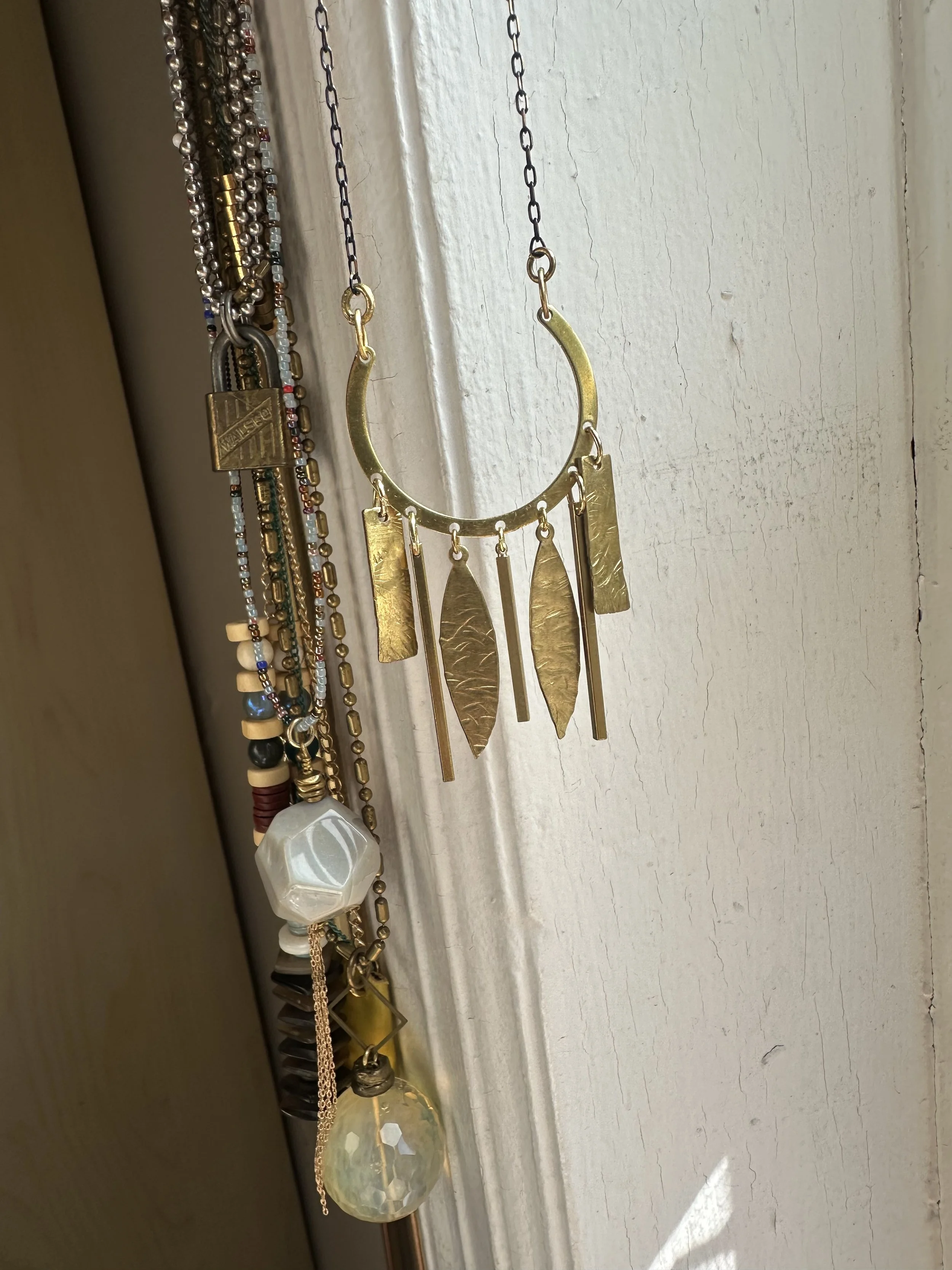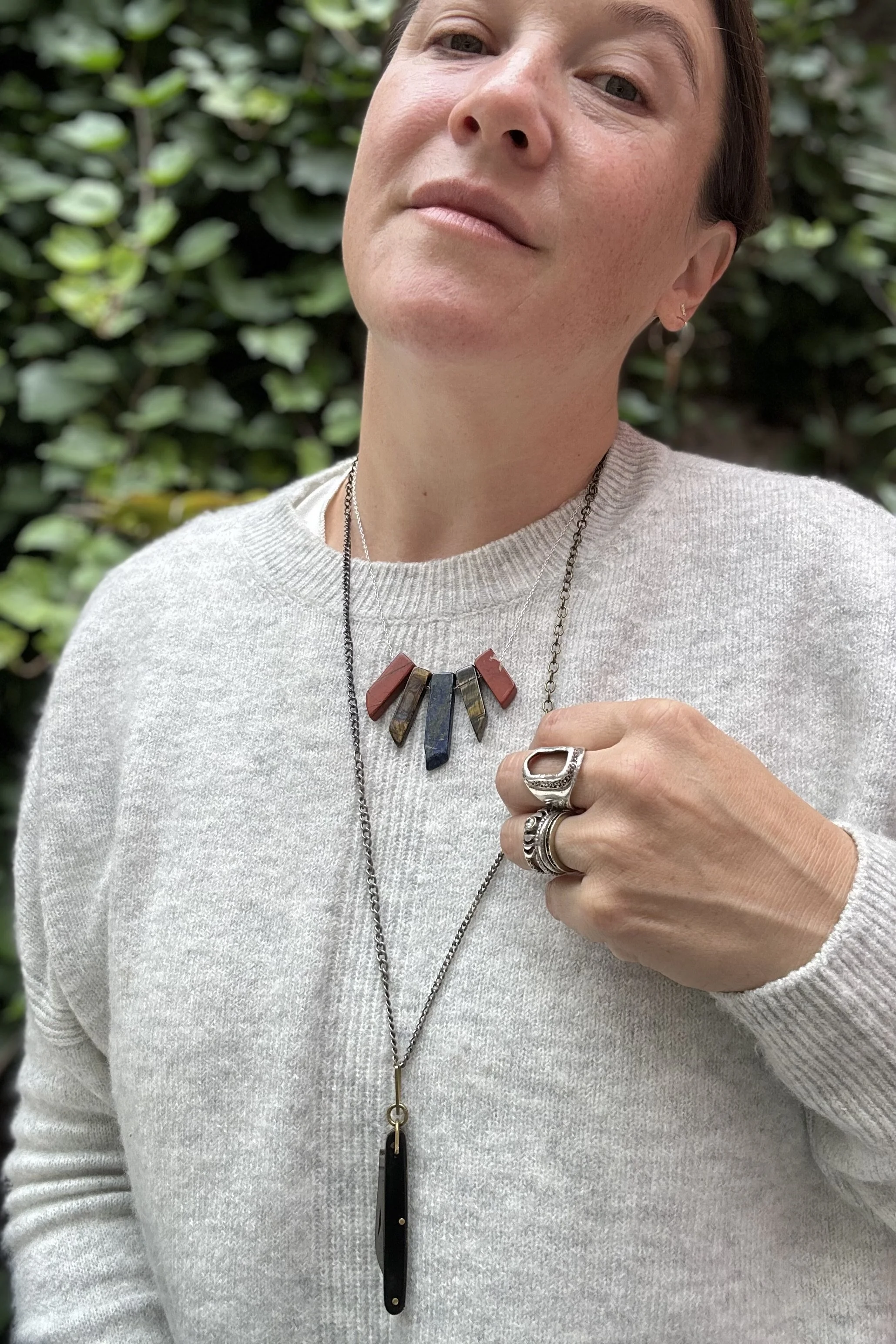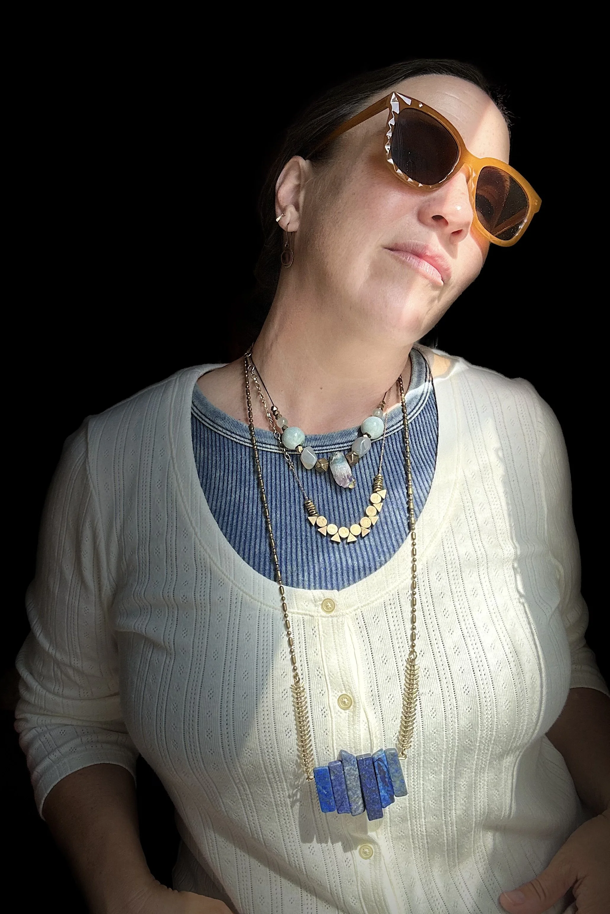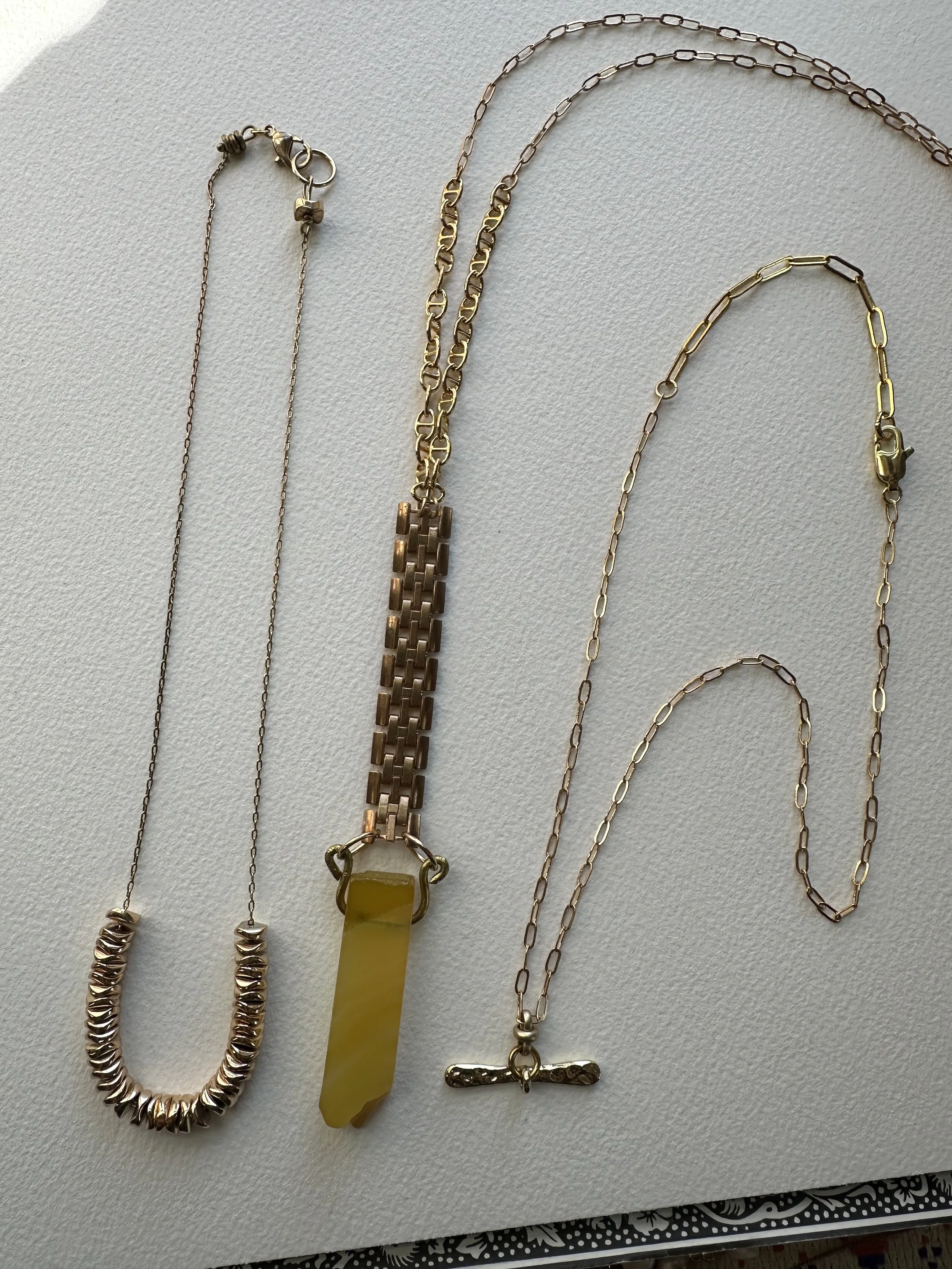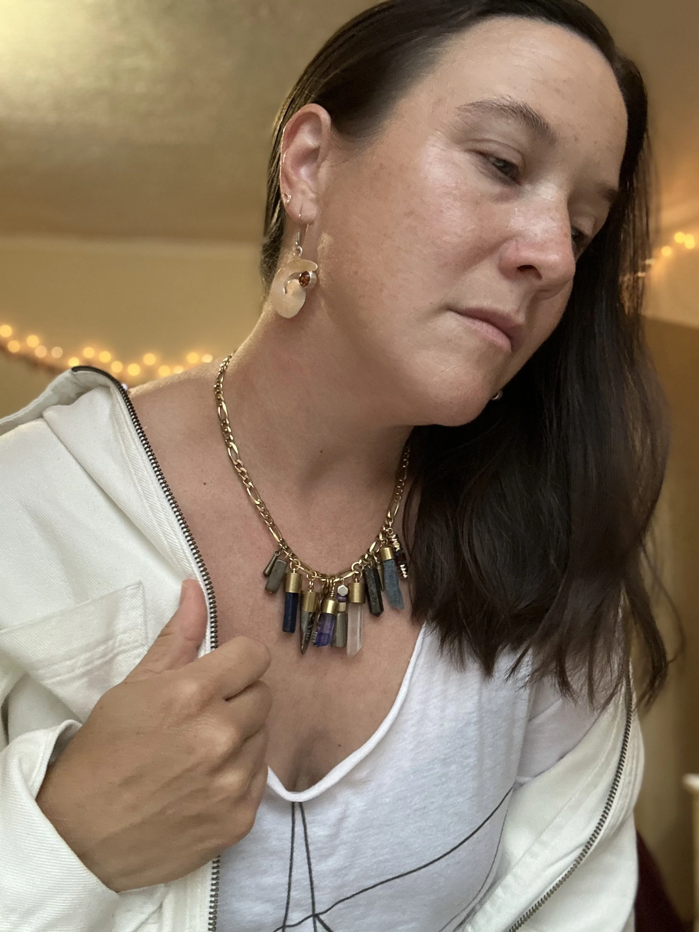 Pineapple Quartz Orb Necklace $65.00 Add To Cart Added! Amethyst Barrel Necklace $65.00 Add To Cart Added! rainbow gemstone arc necklace $50.00 Add To Cart Added! white, gold and peach geode beaded necklace $130.00 Add To Cart Added! luxe stone charm necklace $140.00 Add To Cart Added! three layering wand necklaces $120.00 Add To Cart Added! cz bling barrel and hook antique brass necklace $40.00 Add To Cart Added! serpentine jade disc necklace ii. $60.00 Add To Cart Added! brass horseshoe with textured bars necklace $65.00 Add To Cart Added! silver bling ring chain $65.00 Add To Cart Added! Lapis, Tiger Eye & Red Jasper Fan Necklace $50.00 Add To Cart Added! Bronze collected stick & ball chain necklace $86.00 Add To Cart Added! double lapis lazuli antiqued filigree cage necklace $60.00 Add To Cart Added! crescent moon lariat $50.00 Add To Cart Added! black enamel antique knife necklace $75.00 Add To Cart Added! Cz & Crystal Spiral Elongate Stack Necklace $86.00 Add To Cart Added! Double Stone Drop Turquoise Carnelian Necklace $60.00 Add To Cart Added! silver circle chain $40.00 Add To Cart Added! Blue Kyanite and Green Agate Ring Necklace $86.00 Add To Cart Added! Sun Burst on Matte Gold Chain $60.00 Add To Cart Added! Circle Golden Layering Duo $120.00 Add To Cart Added! Abalone Shield with Brass Spiral Shapes Woven Necklace $130.00 Add To Cart Added! Little Yellow Agate and Topaz Necklace $45.00 Add To Cart Added! Playful Eclectic Strung Necklace $86.00 Sold out Sold Out Added! GOLDEN Sculptural Void Necklace $75.00 Add To Cart Added! huge hammered hoop necklace $50.00 Add To Cart Added! Golden dimpled circle and brass weight pendant $60.00 Add To Cart Added! kyanite lariat dramatic brass and hematite beaded necklace $84.00 Add To Cart Added! Circle Front Calligraphy Clasp Chain $65.00 Add To Cart Added! organic gold pods smile chain $50.00 Add To Cart Added! ABALONE INLAID POCKET KNIFE NECKLACE from $80.00 Select Color pink multi-colored Both Add To Cart Added! Solid marked circle pendant $50.00 Sold out Sold Out Added! Ammonite on Wave Chain $65.00 Add To Cart Added! tiny anatomical heart $65.00 Add To Cart Added! serpentine jade disc necklace $60.00 Sold out Sold Out Added! Seafoam Lighthouse with Starbust Beaded Array $80.00 Add To Cart Added! AMMONITE ON GOLDEN SQUIGGLE CHAIN $80.00 Add To Cart Added! D-Ring Brass Structure Necklaces from $60.00 Select Size big small both Add To Cart Added! ametrine and pietersite stacked delicate necklace $64.00 Add To Cart Added! hook horn on woven chain $50.00 Add To Cart Added! blue cracked agate beaded orb necklace $45.00 Add To Cart Added! hand forged front large clasp mixed chain $45.00 Add To Cart Added! Vintage elizabethian chain collar $64.00 Add To Cart Added! Fleur-de-Lis Golden Necklace $40.00 Add To Cart Added! woven chain with golden turtle pendant $65.00 Add To Cart Added! matte chain with huge toggle clasp $65.00 Sold out Sold Out Added! tiny wire-wrapped raw emerald $50.00 Add To Cart Added! faceted onyx elongated lighthouse necklace $78.00 Add To Cart Added! purple glass rectangle necklace $40.00 Add To Cart Added! bold yellow agate spears ii $65.00 Sold out Sold Out Added! yellow agate watch chain lariat necklace $75.00 Add To Cart Added! sterling silver spiral chain lariat $80.00 Add To Cart Added! sterling silver spiral chain with t-bar $80.00 Sold out Sold Out Added! cloisonne vintage fish clasp-add-on circle chain necklace $80.00 green blue Add To Cart Added! mesh chain with blingy stone altar $88.00 Sold out Sold Out Added! bold steel railroad chain with connector rings $54.00 Add To Cart Added! super long freshwater pearl strand $120.00 Add To Cart Added! green agate ring and pink lighthouse necklace $70.00 Add To Cart Added! red agate rhombus necklace $65.00 Sold out Sold Out Added! magical elixir gemstone beaded necklace $120.00 Add To Cart Added! tiny textured t-bar chain $40.00 Sold out Sold Out Added! quartz and carnelian orb delicate layering necklaces $60.00 Sold out Sold Out Added! vintage solid bejeweled squirrel necklace $80.00 Sold out Sold Out Added! wavy chalcedony collar $65.00 Add To Cart Added! heart burst with hand-forged clasp iii. $68.00 Sold out Sold Out Added! Brass Pods Smile Chain $40.00 Add To Cart Added! Lapis Lazuli Spears with Dramatic Chain $75.00 Sold out Sold Out Added! triple wand on luxe chain $82.00 Sold out Sold Out Added! YELLOW QUARTZ WAND TORTOISE RING PURPLE CHAIN $55.00 Add To Cart Added! blue dip dyed rope yellow glass and wooden columns necklace $95.00 Sold out Sold Out Added! fluorite and yellow onxy points ft brass square pendant duos $60.00 Add To Cart Added! crushed red agate shield pendant $55.00 Add To Cart Added! antique silver zipper lariat necklace $50.00 Add To Cart Added! TWO ANTIQUE KEYS LAYERING NECKLACES iii. $86.00 Add To Cart Added! Textured Circle Front Clasp Chain $60.00 Sold out Sold Out Added! magenta and carnelian crystal collar $68.00 Sold out Sold Out Added! Golden Bundle; 3 necklaces $144.00 Sold out Sold Out Added! Abalone Square Stack with Beaded Elegance Necklace $65.00 Add To Cart Added! Aqua Terra and Red Creek Jasper Fan Necklace $86.00 Sold out Sold Out Added! brass t-horn necklace $55.00 Add To Cart Added! Sun Burst with Front Clasp Chain Necklace $68.00 Sold out Sold Out Added! Opalite Lighthouse Necklace $75.00 Add To Cart Added! Stone Curiosity Cabinet Necklace $125.00 Add To Cart Added! Rough Black Tourmaline with Dalmatian Jasper Ring $80.00 Add To Cart Added! Huge rough cut clear quartz necklace $60.00 Add To Cart Added! heart burst on paperclip chain $60.00 Sold out Sold Out Added! tiny freshwater pearl drop $50.00 Sold out Sold Out Added! front hammered hoop and hand-forged clasp necklace $55.00 Sold out Sold Out Added! vintage coin and moonstone on luxe bow knot chain $75.00 Add To Cart Added! wavy ring dimple brass handmade mixed metal chain $68.00 Add To Cart Added! Crushed Pyrite and Golden Quartz Shield Necklace $86.00 Add To Cart Added!