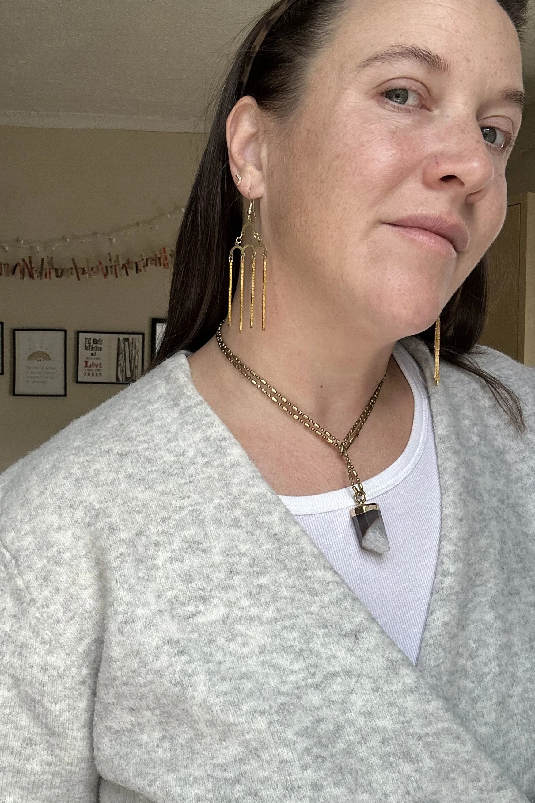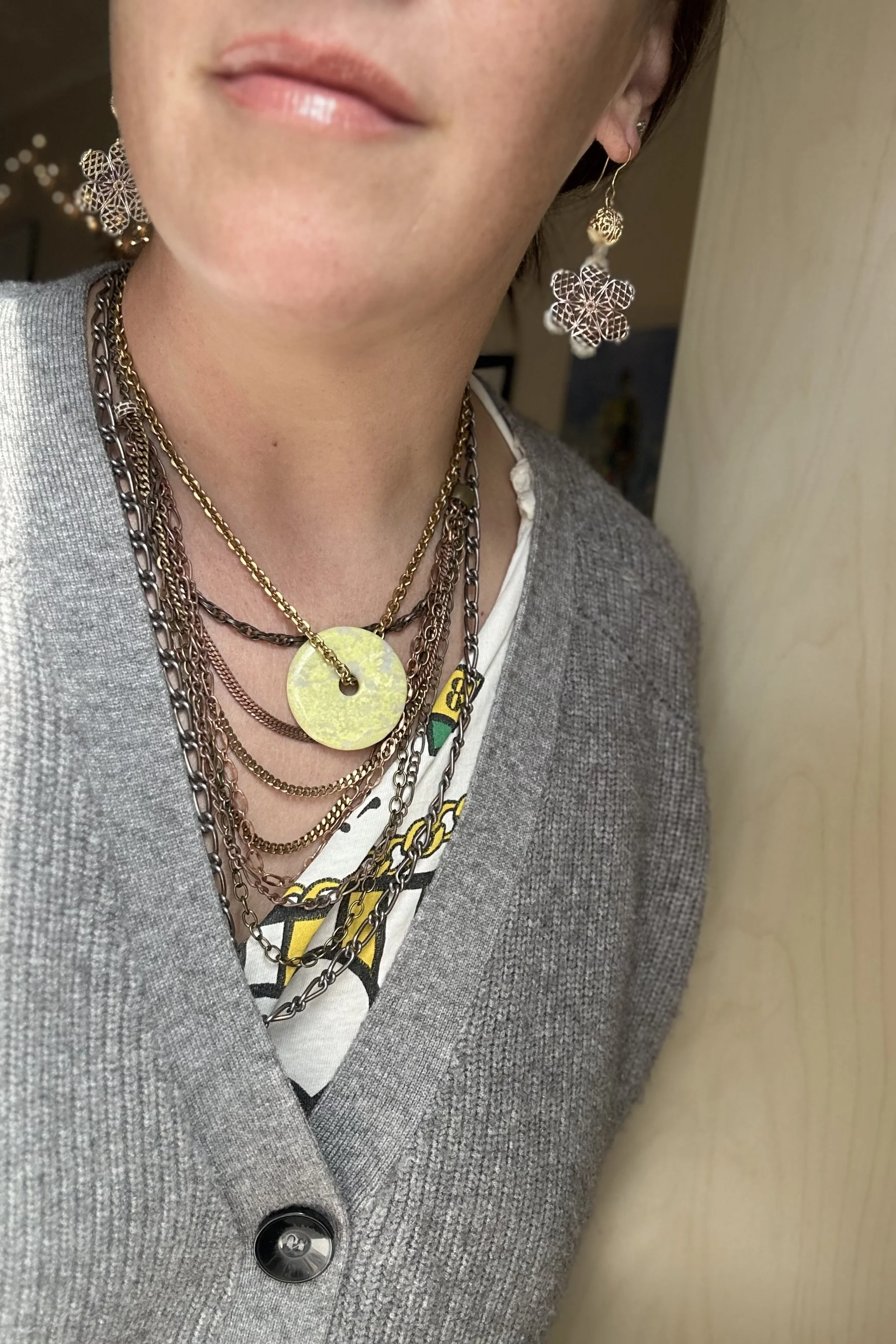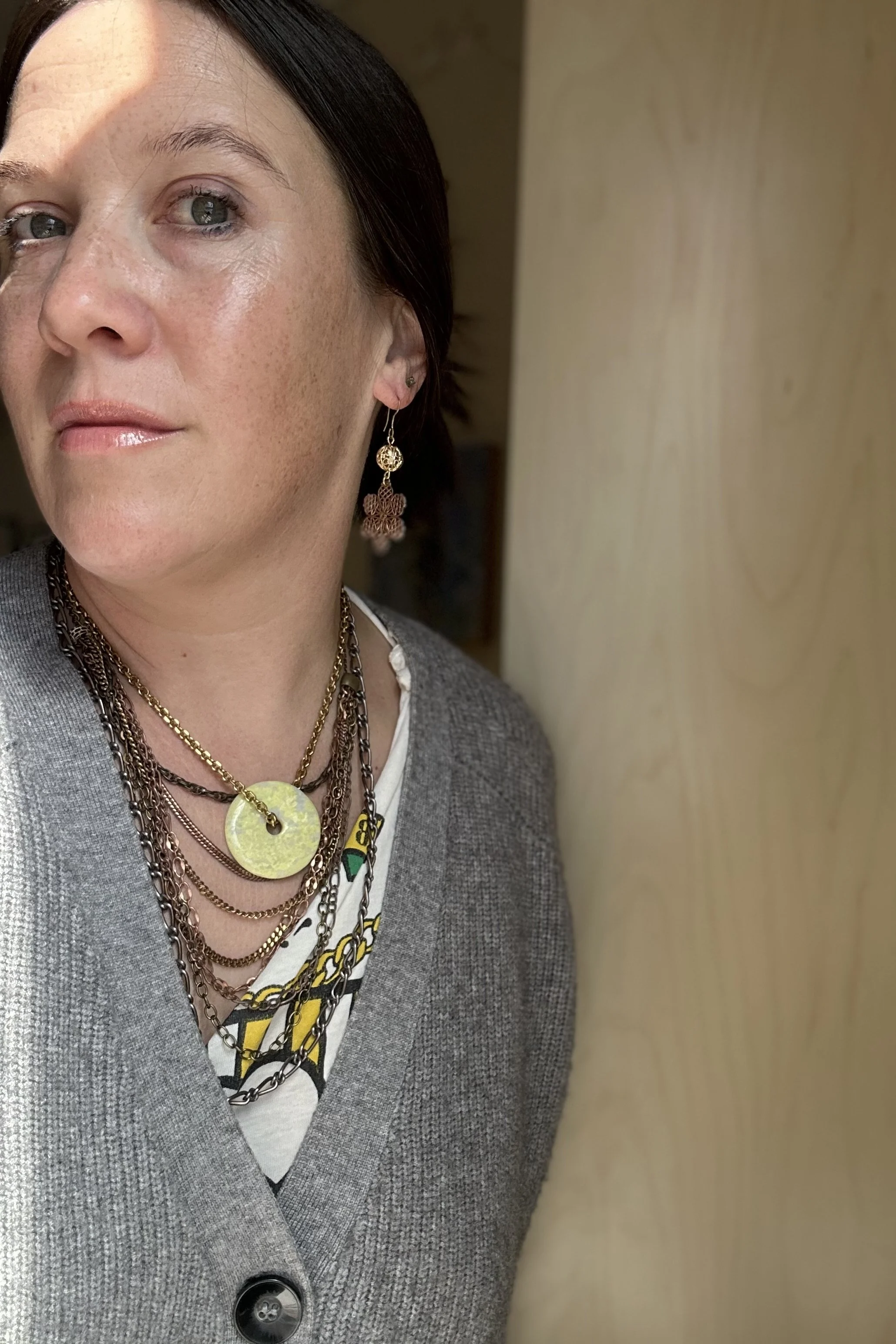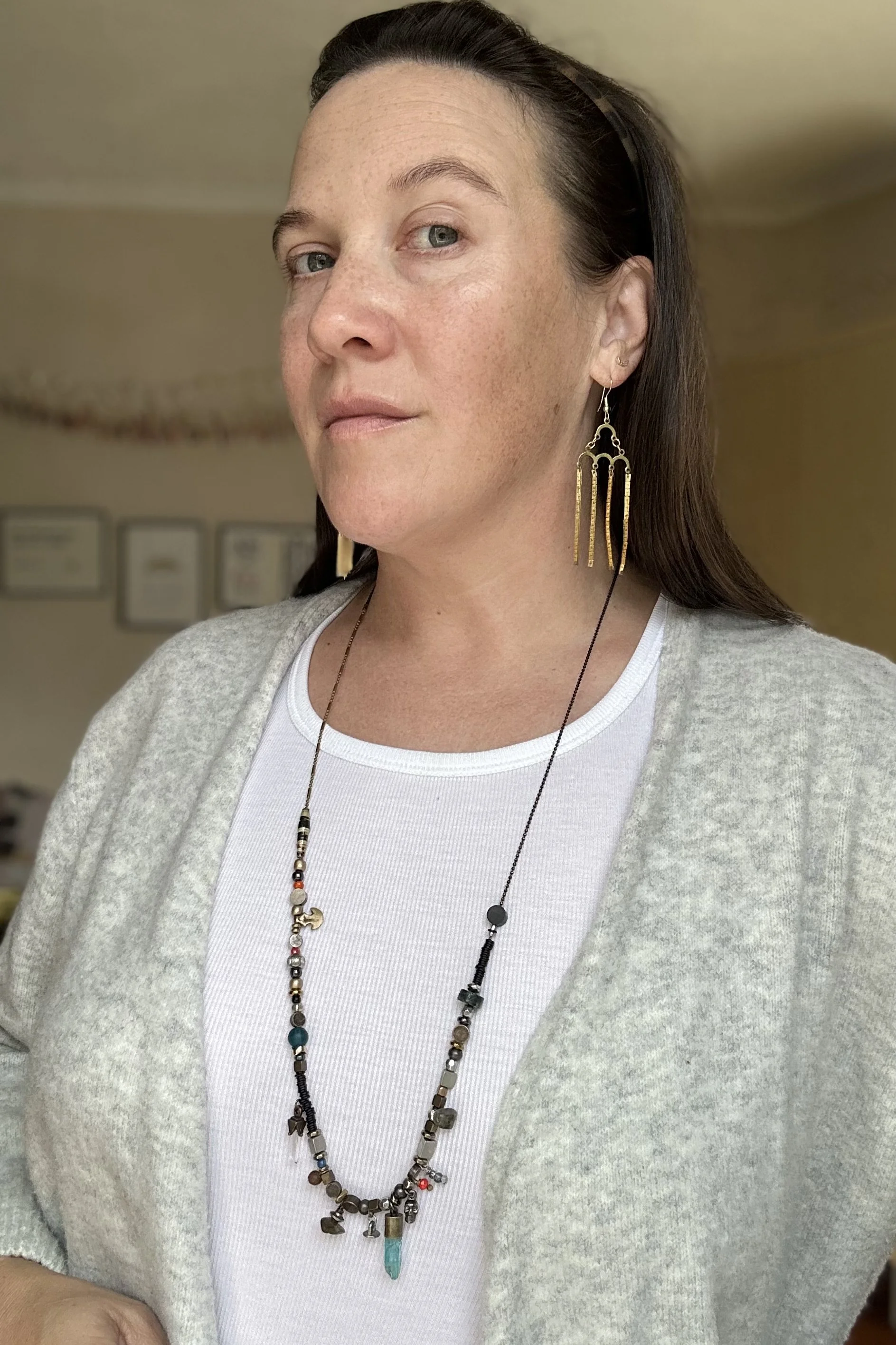 Pineapple Quartz Orb Necklace $65.00 Add To Cart Added! Amethyst Barrel Necklace $65.00 Add To Cart Added! rainbow gemstone arc necklace $50.00 Add To Cart Added! white, gold and peach geode beaded necklace $130.00 Add To Cart Added! luxe stone charm necklace $140.00 Add To Cart Added! three layering wand necklaces $120.00 Add To Cart Added! cz bling barrel and hook antique brass necklace $40.00 Add To Cart Added! serpentine jade disc necklace ii. $60.00 Add To Cart Added! brass horseshoe with textured bars necklace $65.00 Add To Cart Added! silver bling ring chain $65.00 Add To Cart Added! Lapis, Tiger Eye & Red Jasper Fan Necklace $50.00 Add To Cart Added! Bronze collected stick & ball chain necklace $86.00 Add To Cart Added! double lapis lazuli antiqued filigree cage necklace $60.00 Add To Cart Added! crescent moon lariat $50.00 Add To Cart Added! black enamel antique knife necklace $75.00 Add To Cart Added! Cz & Crystal Spiral Elongate Stack Necklace $86.00 Add To Cart Added! Double Stone Drop Turquoise Carnelian Necklace $60.00 Add To Cart Added! silver circle chain $40.00 Add To Cart Added! Blue Kyanite and Green Agate Ring Necklace $86.00 Add To Cart Added! Sun Burst on Matte Gold Chain $60.00 Add To Cart Added! Circle Golden Layering Duo $120.00 Add To Cart Added! Abalone Shield with Brass Spiral Shapes Woven Necklace $130.00 Add To Cart Added! Little Yellow Agate and Topaz Necklace $45.00 Add To Cart Added! Playful Eclectic Strung Necklace $86.00 Sold out Sold Out Added! GOLDEN Sculptural Void Necklace $75.00 Add To Cart Added! huge hammered hoop necklace $50.00 Add To Cart Added! Golden dimpled circle and brass weight pendant $60.00 Add To Cart Added! kyanite lariat dramatic brass and hematite beaded necklace $84.00 Add To Cart Added! Circle Front Calligraphy Clasp Chain $65.00 Add To Cart Added! organic gold pods smile chain $50.00 Add To Cart Added! ABALONE INLAID POCKET KNIFE NECKLACE from $80.00 Select Color pink multi-colored Both Add To Cart Added! Solid marked circle pendant $50.00 Sold out Sold Out Added! Ammonite on Wave Chain $65.00 Add To Cart Added! tiny anatomical heart $65.00 Add To Cart Added! serpentine jade disc necklace $60.00 Sold out Sold Out Added! Seafoam Lighthouse with Starbust Beaded Array $80.00 Add To Cart Added! AMMONITE ON GOLDEN SQUIGGLE CHAIN $80.00 Add To Cart Added! D-Ring Brass Structure Necklaces from $60.00 Select Size big small both Add To Cart Added! ametrine and pietersite stacked delicate necklace $64.00 Add To Cart Added! hook horn on woven chain $50.00 Add To Cart Added! blue cracked agate beaded orb necklace $45.00 Add To Cart Added! hand forged front large clasp mixed chain $45.00 Add To Cart Added! Vintage elizabethian chain collar $64.00 Add To Cart Added! Fleur-de-Lis Golden Necklace $40.00 Add To Cart Added! woven chain with golden turtle pendant $65.00 Add To Cart Added! matte chain with huge toggle clasp $65.00 Sold out Sold Out Added! tiny wire-wrapped raw emerald $50.00 Add To Cart Added! faceted onyx elongated lighthouse necklace $78.00 Add To Cart Added! purple glass rectangle necklace $40.00 Add To Cart Added! bold yellow agate spears ii $65.00 Sold out Sold Out Added! yellow agate watch chain lariat necklace $75.00 Add To Cart Added! sterling silver spiral chain lariat $80.00 Add To Cart Added! sterling silver spiral chain with t-bar $80.00 Sold out Sold Out Added! cloisonne vintage fish clasp-add-on circle chain necklace $80.00 green blue Add To Cart Added! mesh chain with blingy stone altar $88.00 Sold out Sold Out Added! bold steel railroad chain with connector rings $54.00 Add To Cart Added! super long freshwater pearl strand $120.00 Add To Cart Added! green agate ring and pink lighthouse necklace $70.00 Add To Cart Added! red agate rhombus necklace $65.00 Sold out Sold Out Added! magical elixir gemstone beaded necklace $120.00 Add To Cart Added! tiny textured t-bar chain $40.00 Sold out Sold Out Added! quartz and carnelian orb delicate layering necklaces $60.00 Sold out Sold Out Added! vintage solid bejeweled squirrel necklace $80.00 Sold out Sold Out Added! wavy chalcedony collar $65.00 Add To Cart Added! heart burst with hand-forged clasp iii. $68.00 Sold out Sold Out Added! Brass Pods Smile Chain $40.00 Add To Cart Added! Lapis Lazuli Spears with Dramatic Chain $75.00 Sold out Sold Out Added! triple wand on luxe chain $82.00 Sold out Sold Out Added! YELLOW QUARTZ WAND TORTOISE RING PURPLE CHAIN $55.00 Add To Cart Added! blue dip dyed rope yellow glass and wooden columns necklace $95.00 Sold out Sold Out Added! fluorite and yellow onxy points ft brass square pendant duos $60.00 Add To Cart Added! crushed red agate shield pendant $55.00 Add To Cart Added! antique silver zipper lariat necklace $50.00 Add To Cart Added! TWO ANTIQUE KEYS LAYERING NECKLACES iii. $86.00 Add To Cart Added! Textured Circle Front Clasp Chain $60.00 Sold out Sold Out Added! magenta and carnelian crystal collar $68.00 Sold out Sold Out Added! Golden Bundle; 3 necklaces $144.00 Sold out Sold Out Added! Abalone Square Stack with Beaded Elegance Necklace $65.00 Add To Cart Added! Aqua Terra and Red Creek Jasper Fan Necklace $86.00 Sold out Sold Out Added! brass t-horn necklace $55.00 Add To Cart Added! Sun Burst with Front Clasp Chain Necklace $68.00 Sold out Sold Out Added! Opalite Lighthouse Necklace $75.00 Add To Cart Added! Stone Curiosity Cabinet Necklace $125.00 Add To Cart Added! Rough Black Tourmaline with Dalmatian Jasper Ring $80.00 Add To Cart Added! Huge rough cut clear quartz necklace $60.00 Add To Cart Added! heart burst on paperclip chain $60.00 Sold out Sold Out Added! tiny freshwater pearl drop $50.00 Sold out Sold Out Added! front hammered hoop and hand-forged clasp necklace $55.00 Sold out Sold Out Added! vintage coin and moonstone on luxe bow knot chain $75.00 Add To Cart Added! wavy ring dimple brass handmade mixed metal chain $68.00 Add To Cart Added! Crushed Pyrite and Golden Quartz Shield Necklace $86.00 Add To Cart Added!